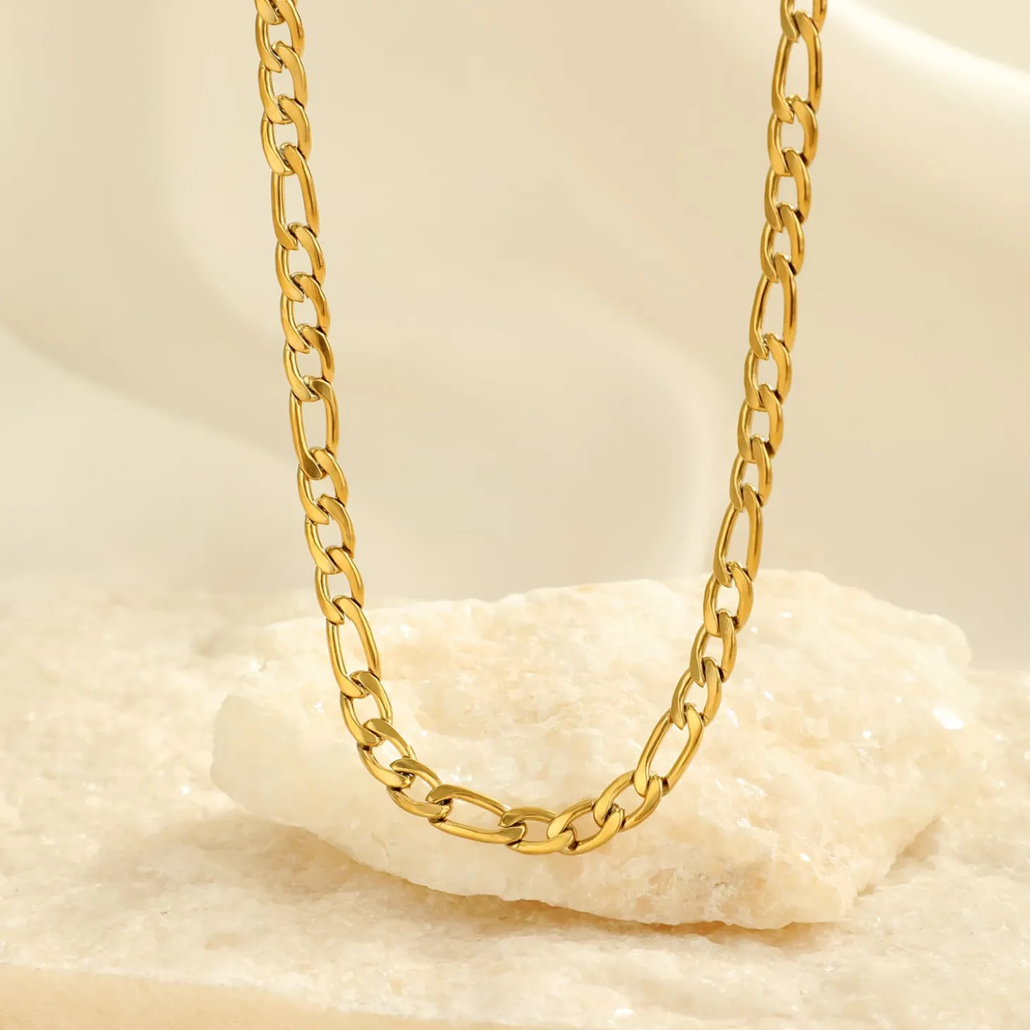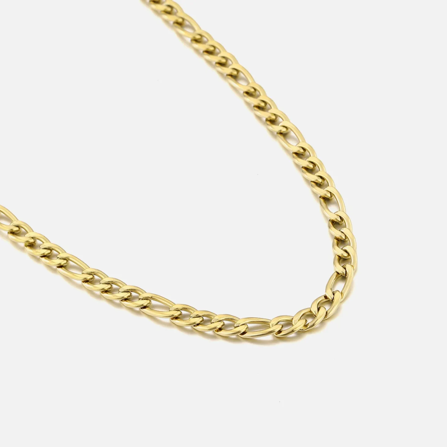 Gouden ketting met Figaro schakel. Lengte 40cm en nog eens te verlengen met 5cm. Dikte 5mm Gemaakt van hoogwaardig stainless steel. Tijdloze uniseks ketting.