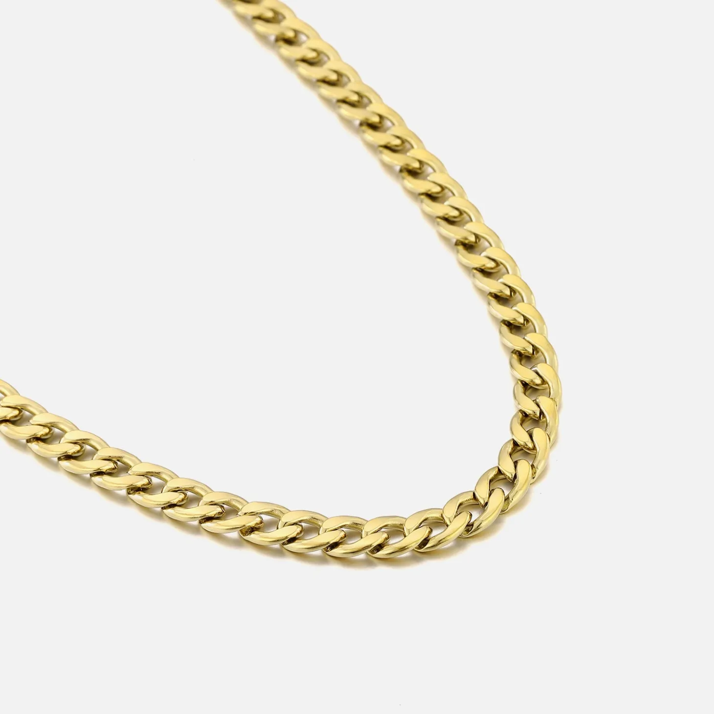 Gouden ketting met basic Cuban schakel. Lengte 40cm en nog eens te verlengen met 5cm. Dikte 6mm. Gemaakt van hoogwaardig stainless steel.