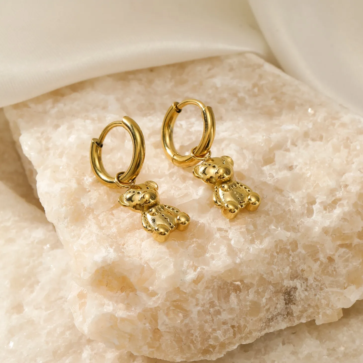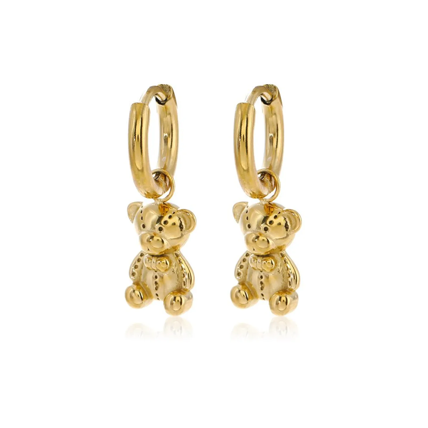 Gouden oorring met beertjes bedeltje. Oorbellen zijn 2.2cm lang. Gemaakt van hoogwaardig stainless steel. Goed te combineren met andere gouden sieraden.
