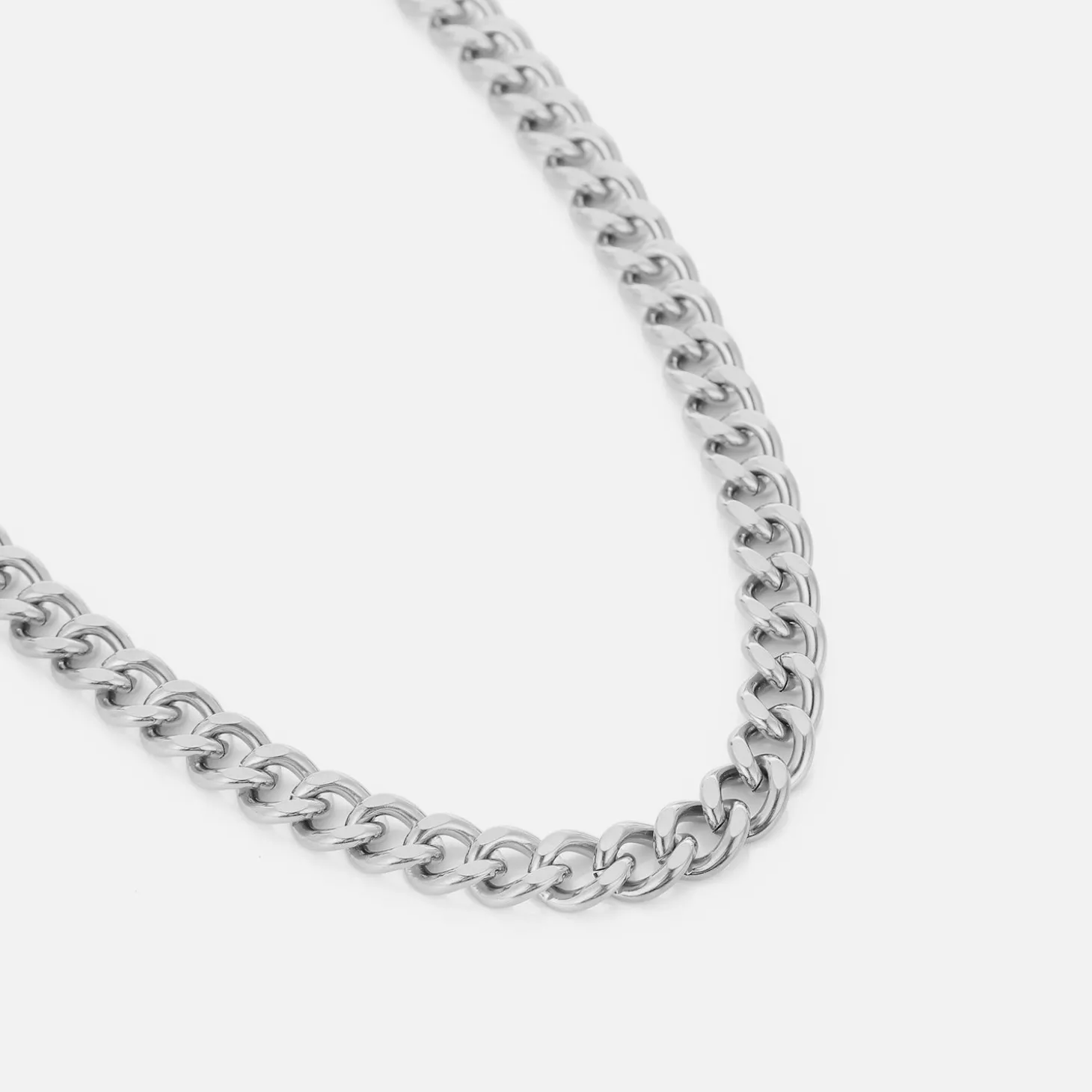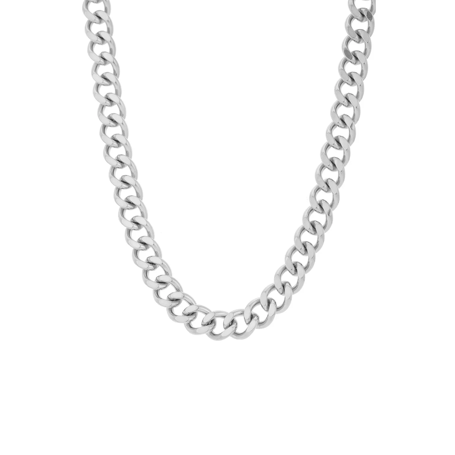 Zilveren choker ketting. Lengte 40cm en nog eens te verlengen met 5cm. Dikte 10mm. Gemaakt van hoogwaardig stainless steel. Deze grove statement ketting met cuban schakel is zeer robuust en populair.