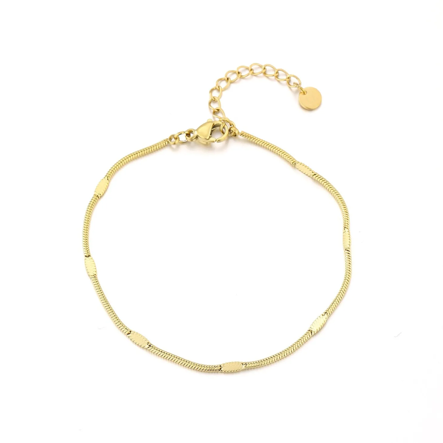 Gouden dunne armband. 16 cm lang en kan nog eens met 4 cm verlengd worden. Dikte van de armband is 2mm. Gemaakt van hoogwaardig stainless steel. Dankzij het verlengstukje is de armband verstelbaar en geschikt voor verschillende polsmaten. goed te combineren met andere gouden sieraden.