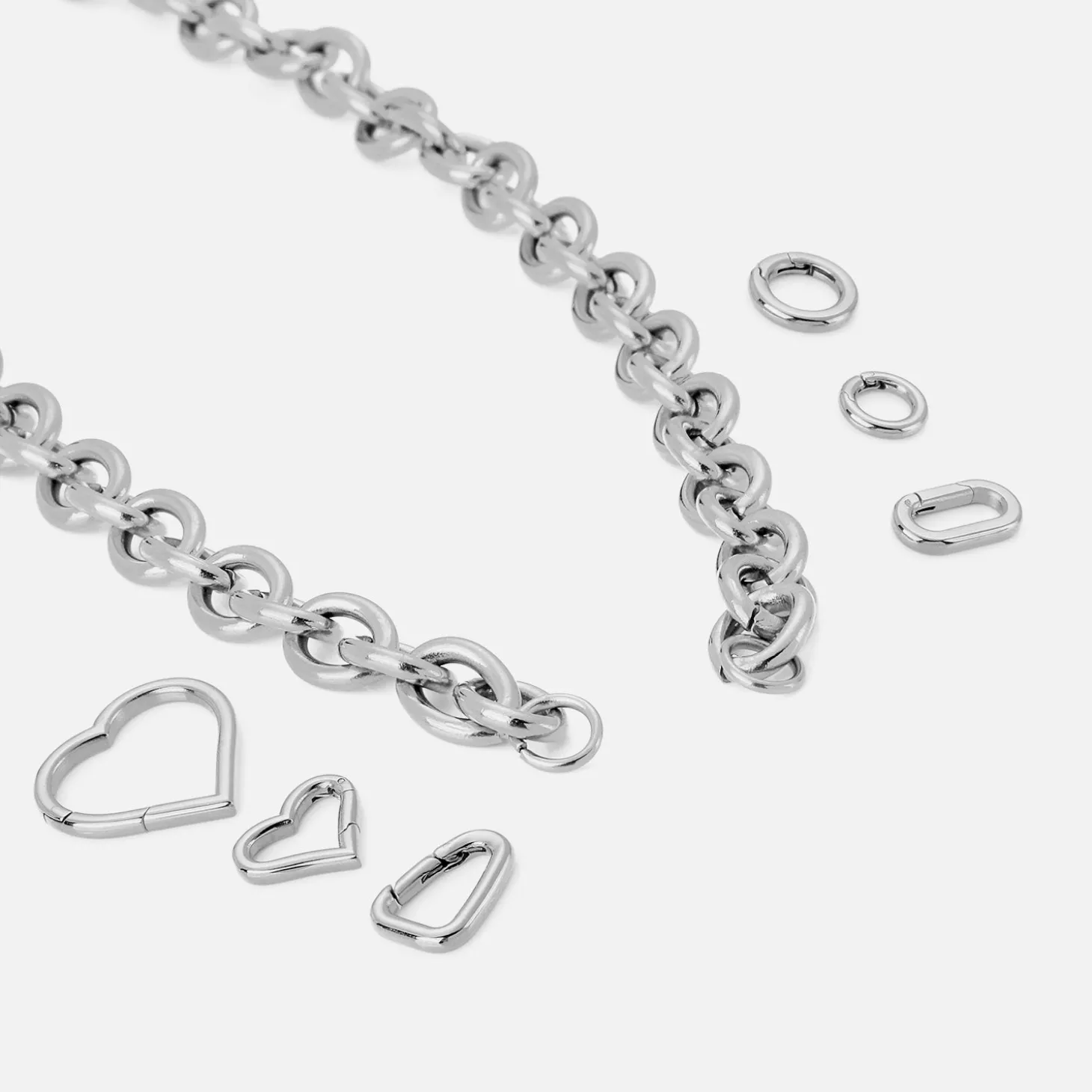 DYO ketting. Lengte is 40cm + 5cm verlengstukje. Gemaakt van hoogwaardig stainless steel. Deze armband is alleen te gebruiken met de bij horen clip. Je kunt hem personaliseren door je initialen en/of geboorte steen erbij te combineren. De bedeltjes zijn te combineren met zowel armband, ketting & oorbellen uit de premium dyo collectie (DYO premium)
