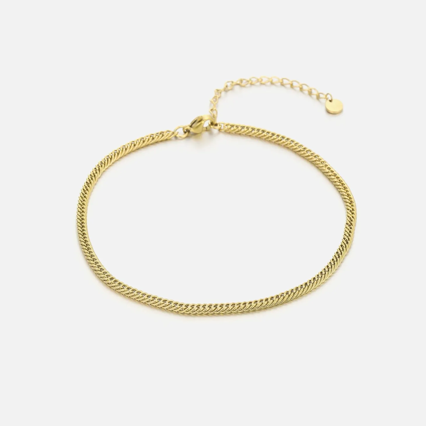 20 cm lang en kan nog eens met 5 cm verlengd worden. Gemaakt van hoogwaardig stainless steel. Dankzij het verlengstukje is de enkelband verstelbaar en geschikt voor verschillende enkelmaten.