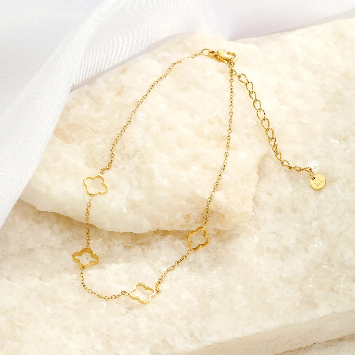 20 cm lang en kan nog eens met 5 cm verlengd worden. Gemaakt van hoogwaardig stainless steel. Dankzij het verlengstukje is de enkelband verstelbaar en geschikt voor verschillende enkelmaten.