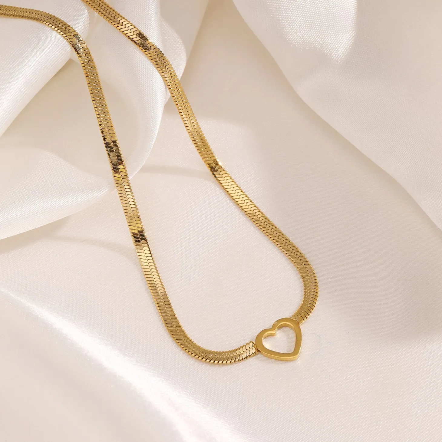 Gouden platte ketting met open hartje. Lengte 40cm en nog eens te verlengen met 5cm. Gemaakt van hoogwaardig stainless steel.