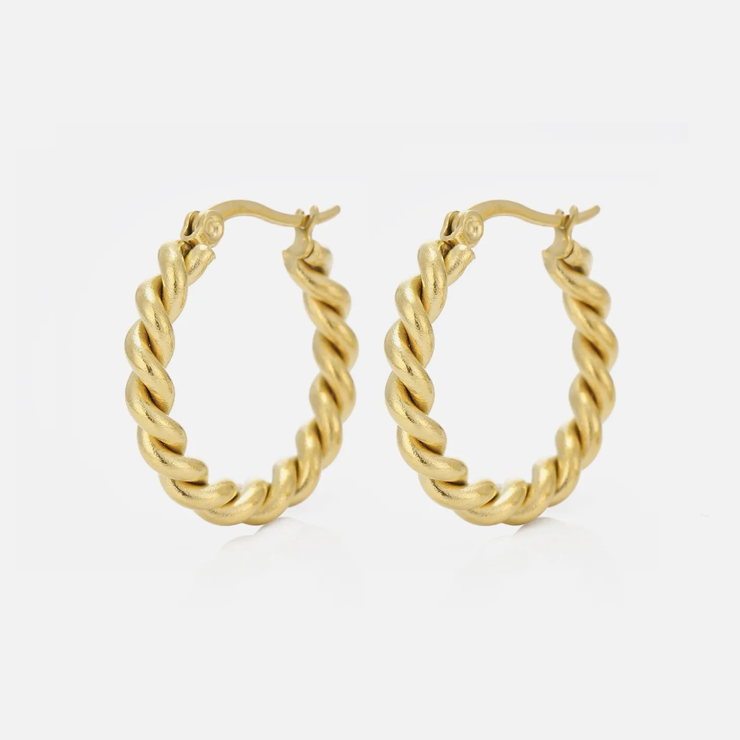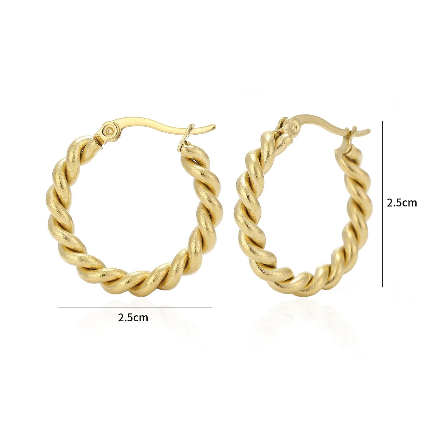 Gouden Hoops oorbellen gedraaid. De oorbel is 2.5cm breed. Gemaakt van hoogwaardig stainless steel.