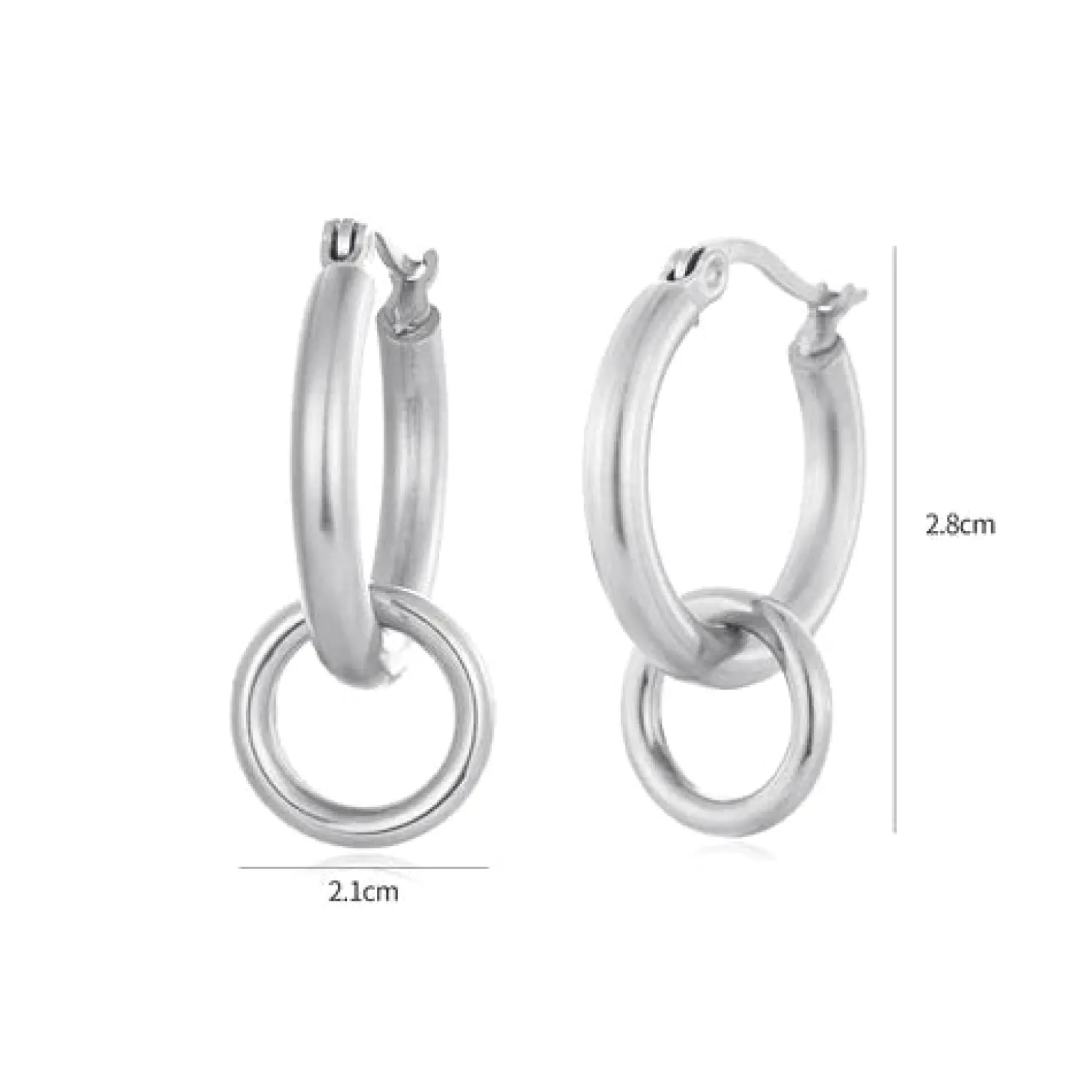 Zilveren dubbel Hoops oorbellen. De oorbel is 2.8cm breed. Gemaakt van hoogwaardig stainless steel.