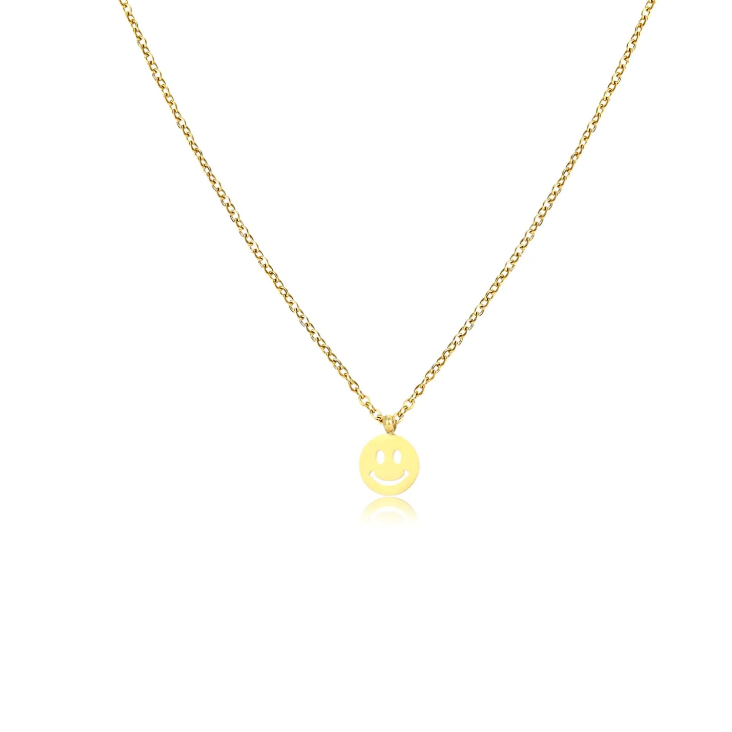 Gouden ketting met smiley. Lengte 40cm en nog eens te verlengen met 5cm. Gemaakt van hoogwaardig stainless steel.