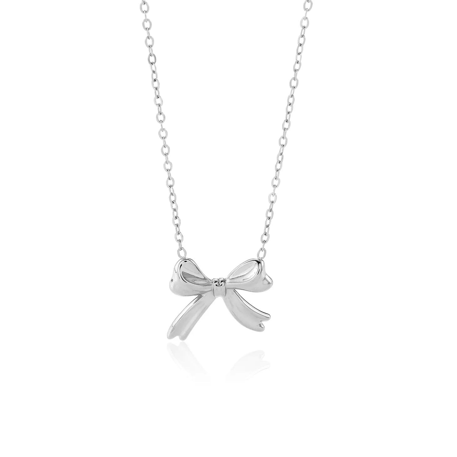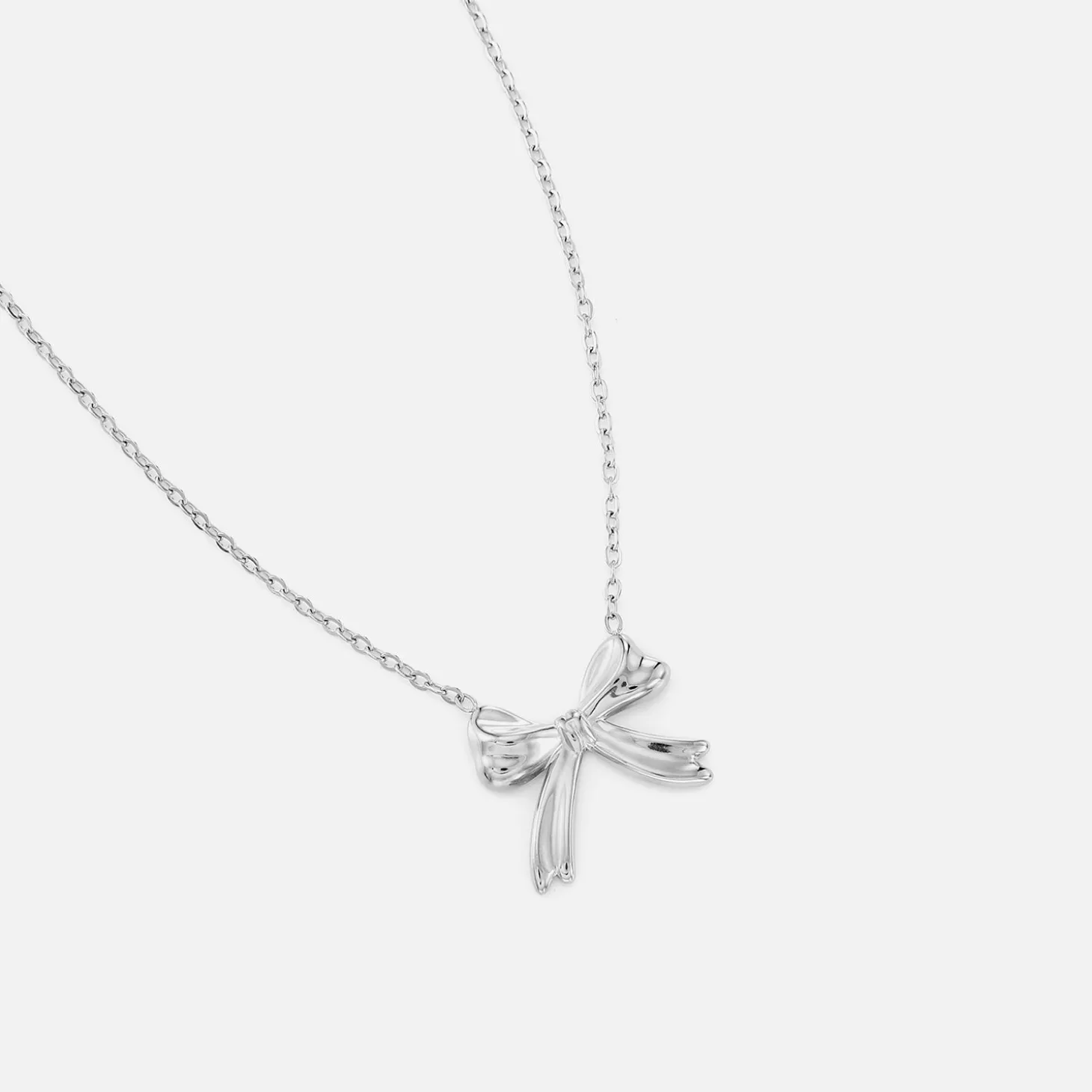 Zilveren ketting met strik. Lengte 40cm en nog eens te verlengen met 5cm. Gemaakt van hoogwaardig stainless steel.