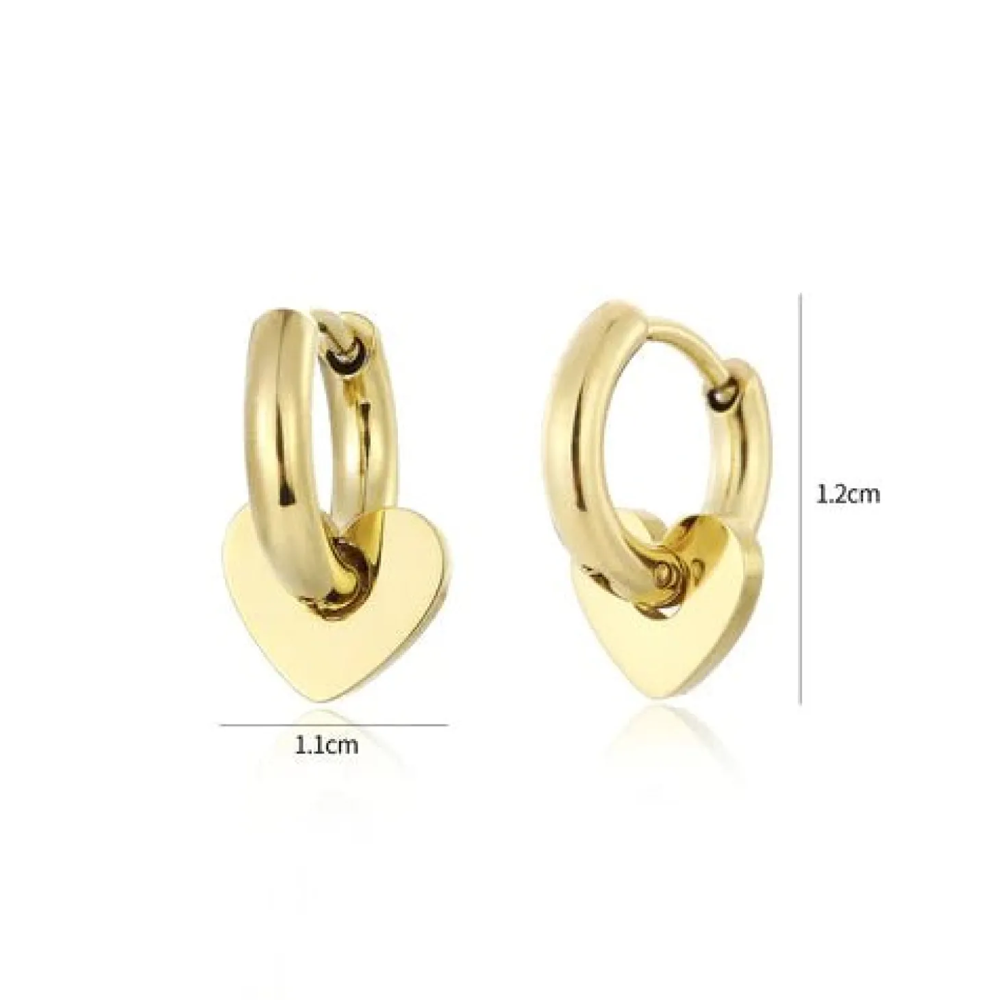 Gouden oorbelen met klein hartje. Deze oorbellen zijn 1.2cm lang. Gemaakt van Hoogwaardig Stainless Steel.