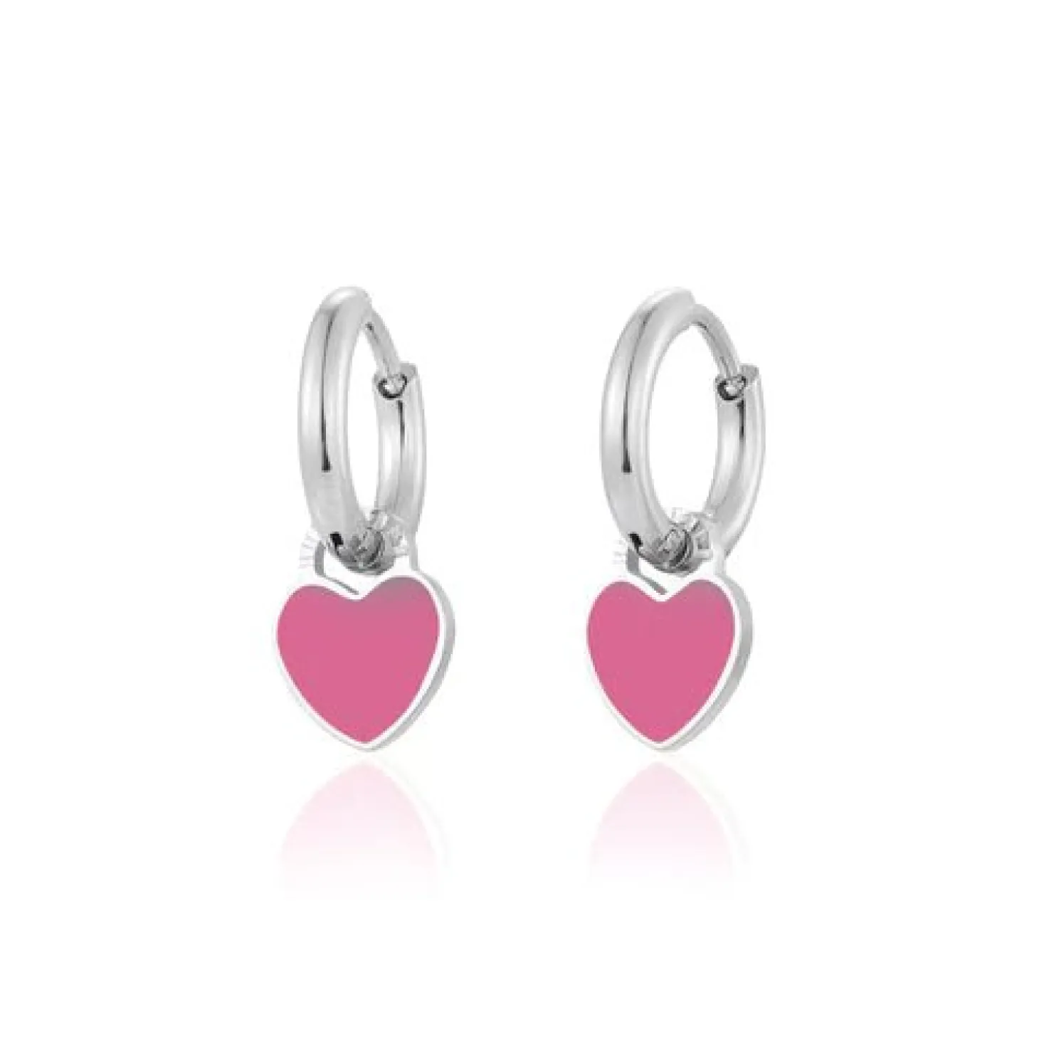 Zilveren oorbelen met roze hartje. Deze oorbellen zijn 1.8cm lang. Gemaakt van Hoogwaardig Stainless Steel.