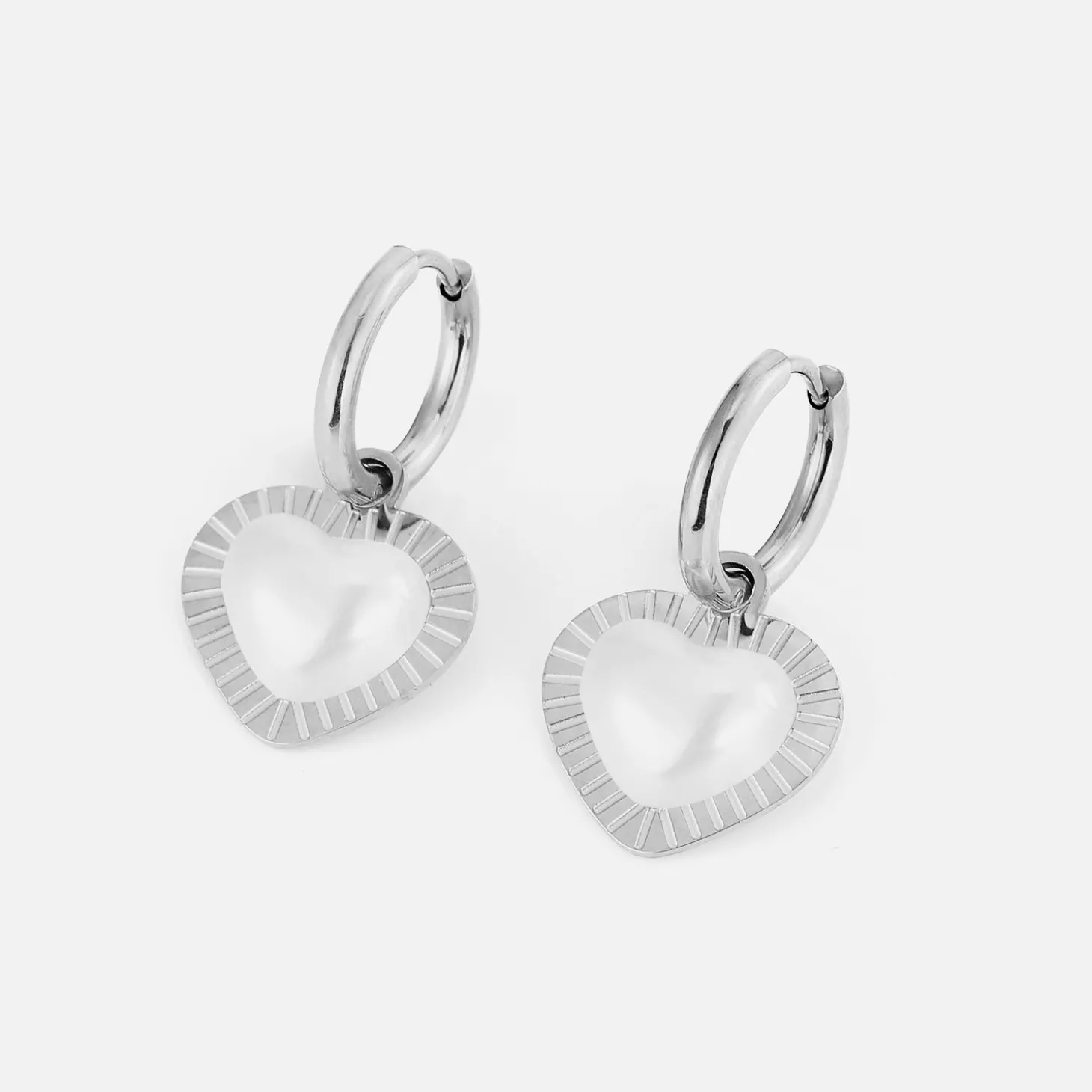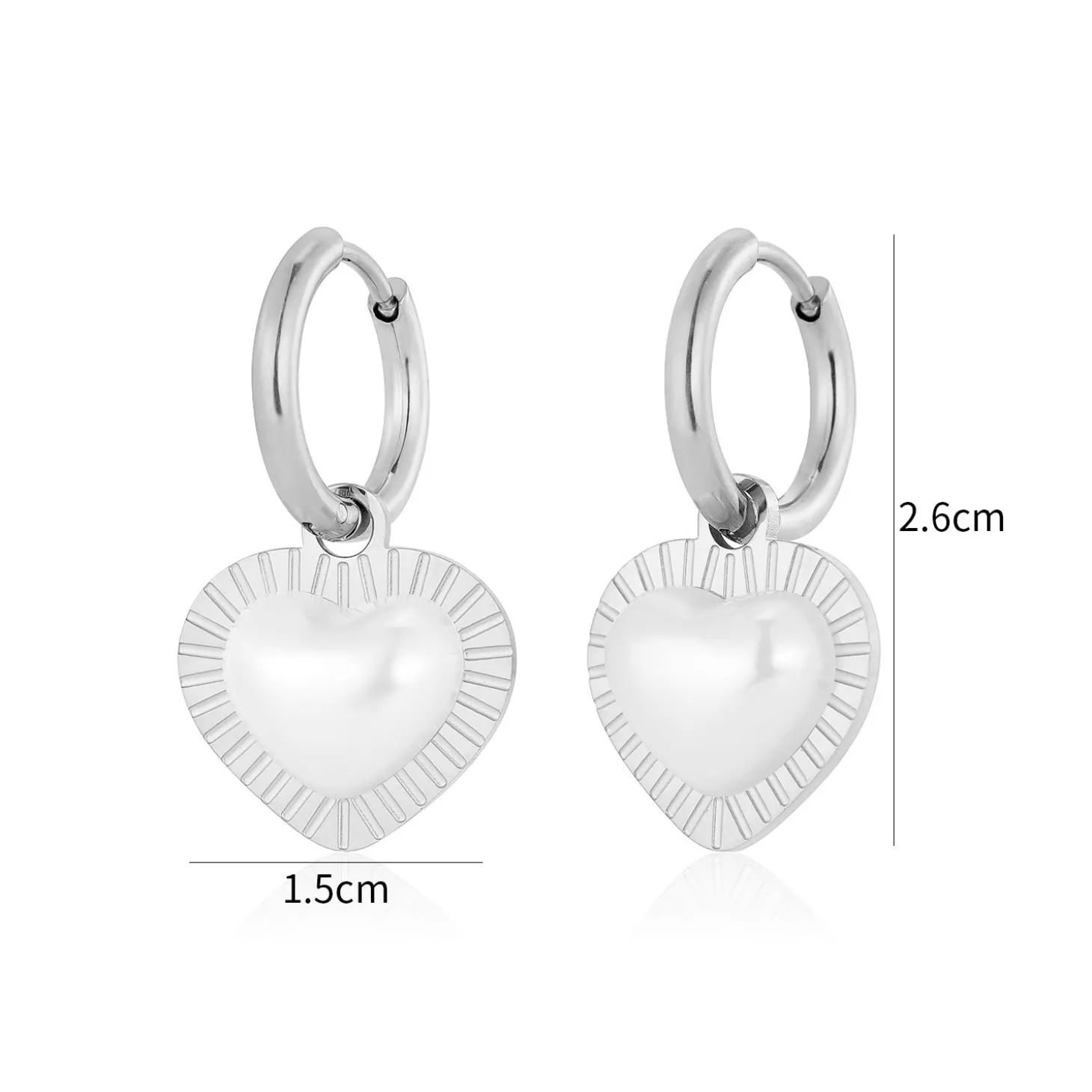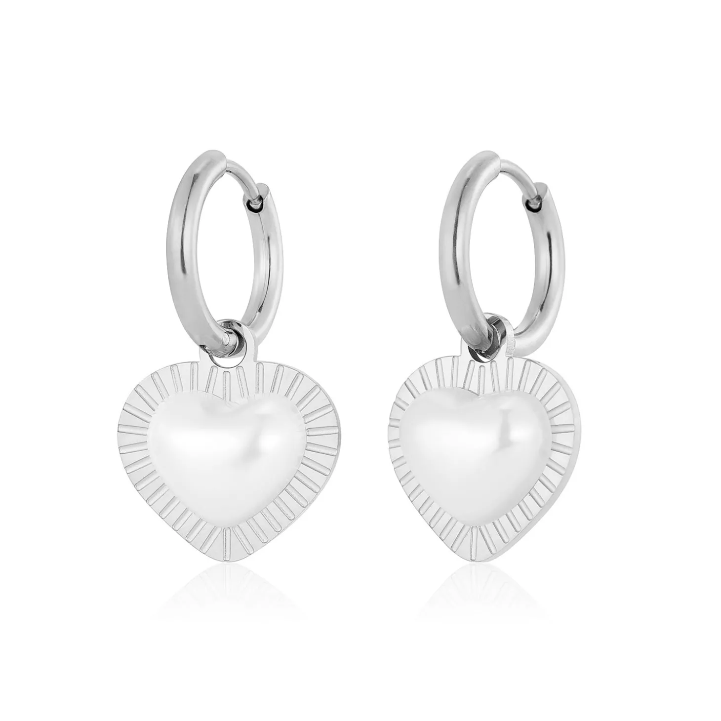 Zilveren oorbellen met parel hart. Deze oorbellen zijn 2.6cm lang. Gemaakt van Hoogwaardig Stainless Steel. (parel kan verkleuren door contact met water)