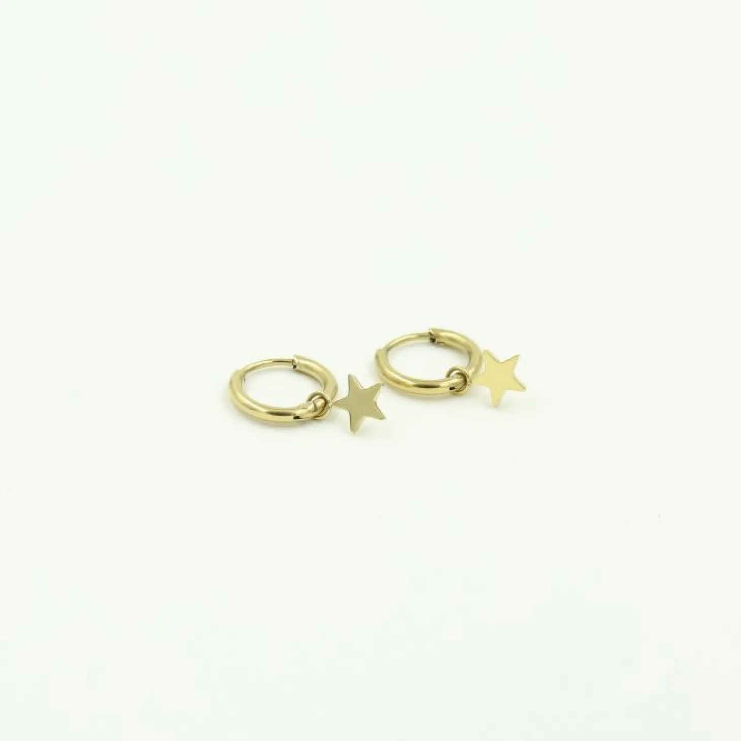 Gouden oorbellen met ster. Deze oorbellen zijn 1.6cm lang. Gemaakt van Hoogwaardig Stainless Steel.