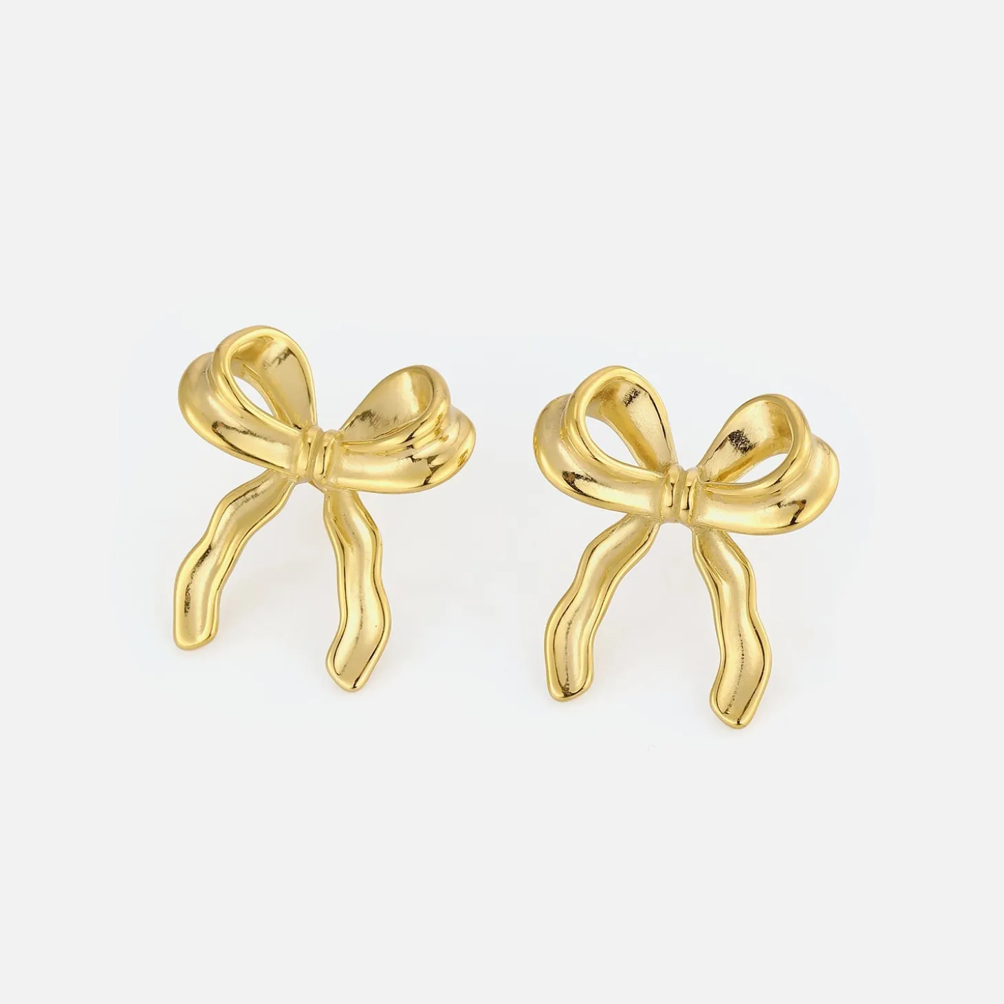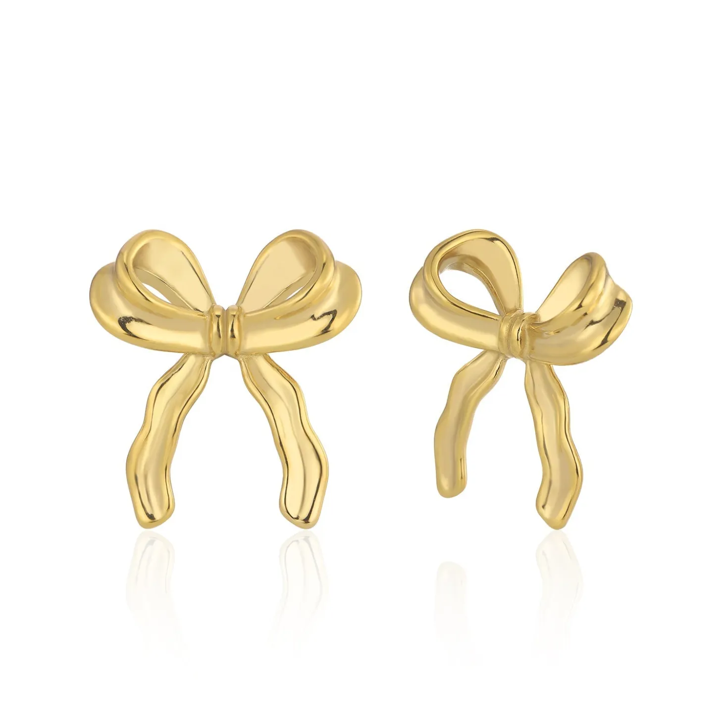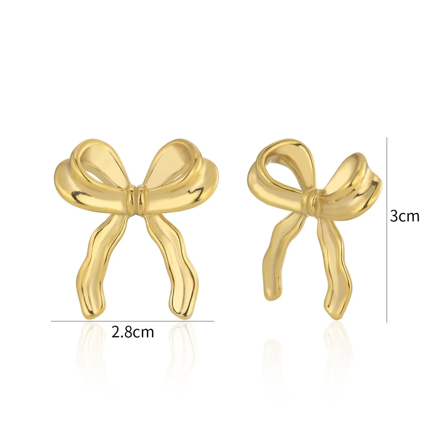 Gouden oorstekers met strikje. Deze oorbellen zijn 3cm lang. Gemaakt van Hoogwaardig Stainless Steel.