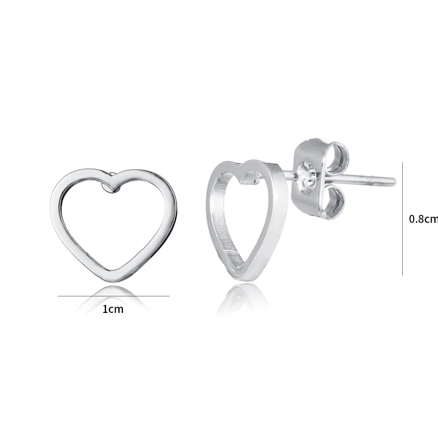 Zilveren stud oorbellen met open hartje. Deze oorbellen zijn 1cm breed. Gemaakt van Hoogwaardig Stainless Steel.