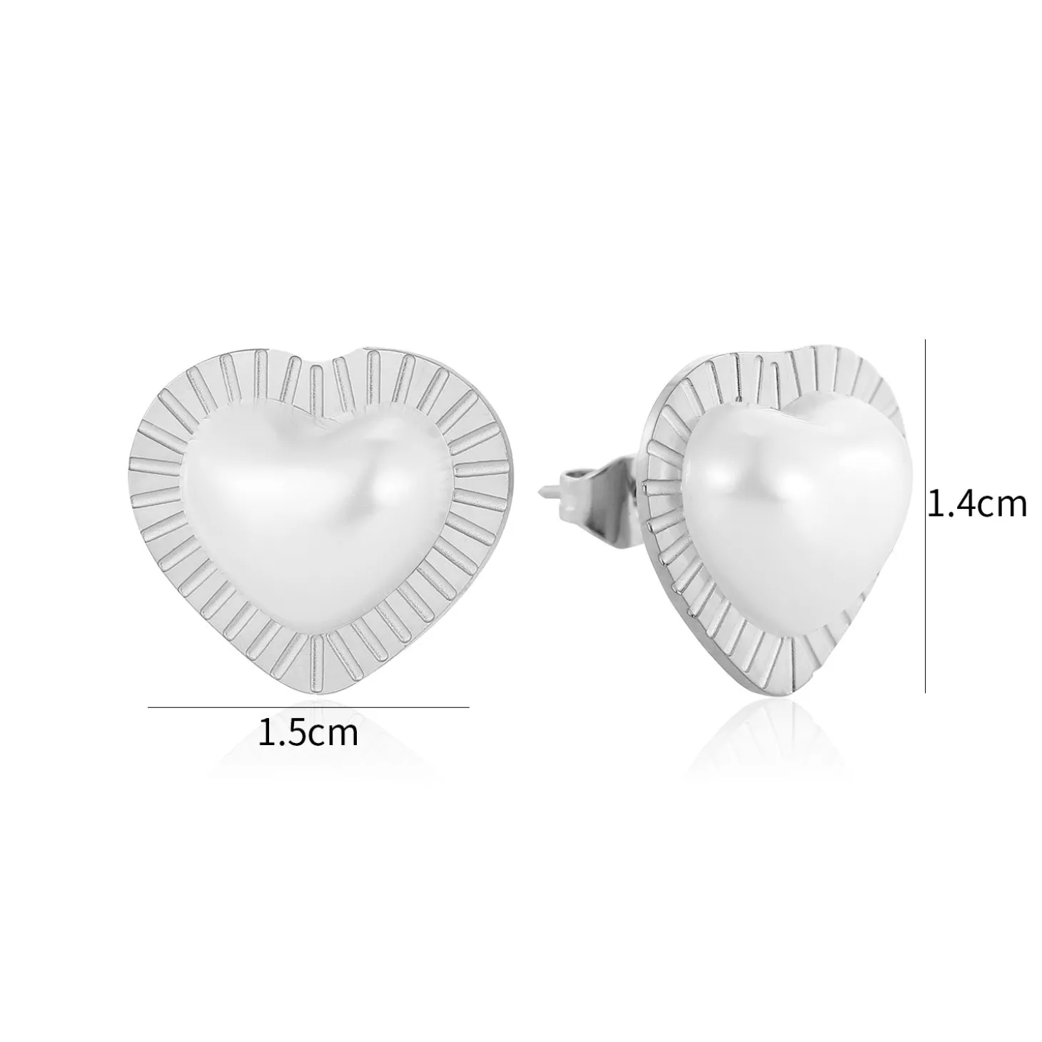 Zilveren stud oorbellen met parel hart. Deze oorbellen zijn 1.4cm breed. Gemaakt van Hoogwaardig Stainless Steel.
