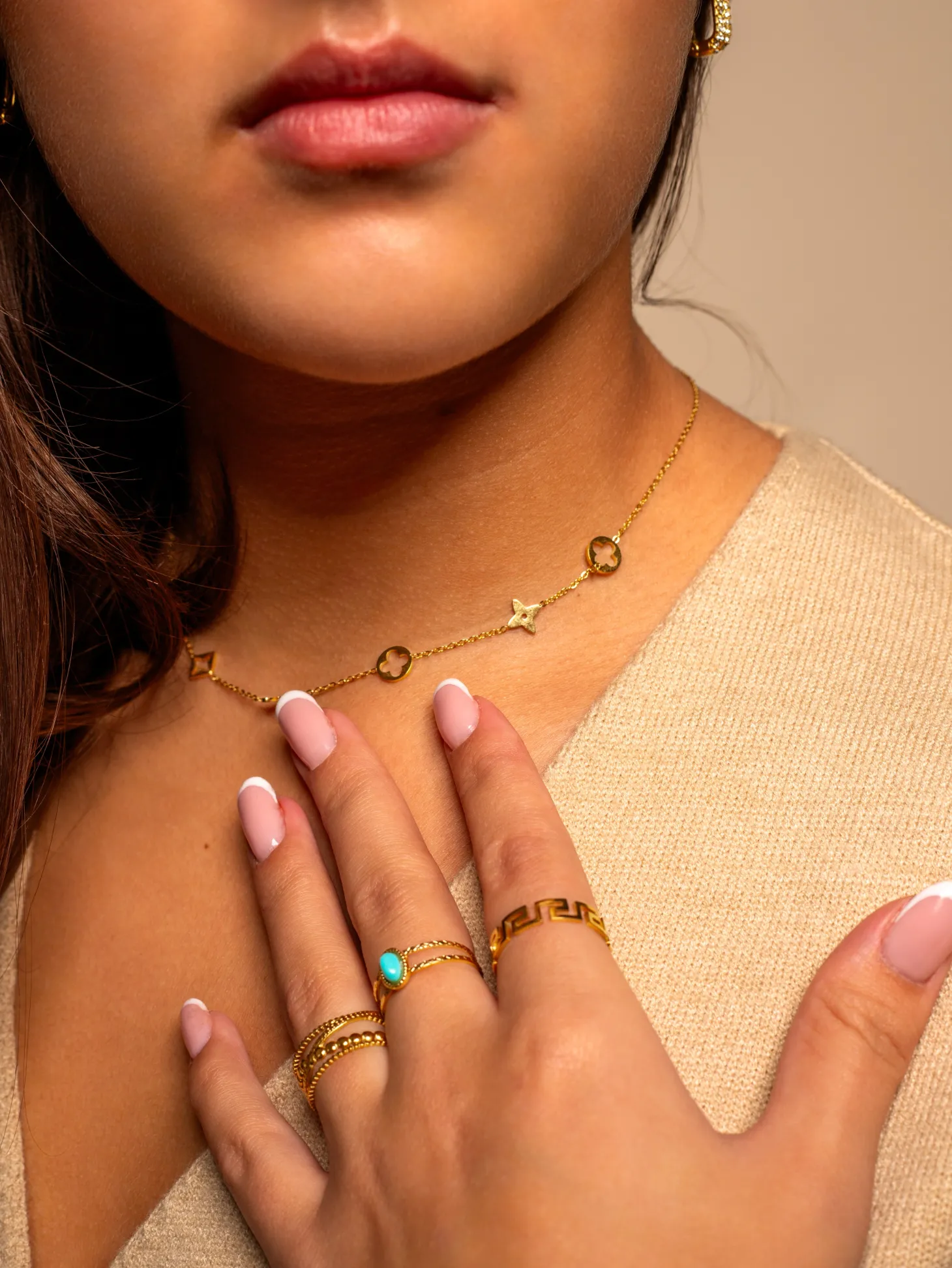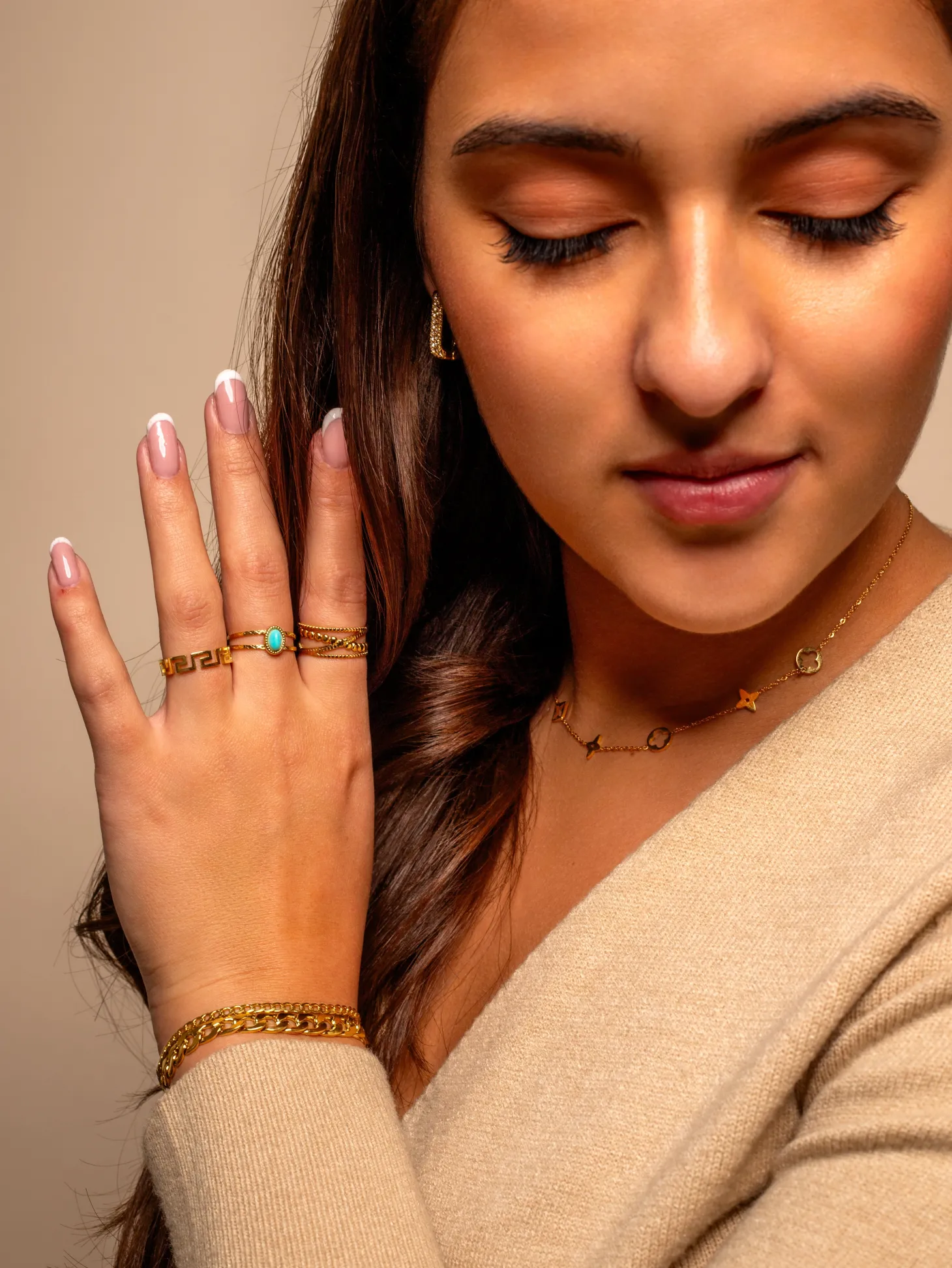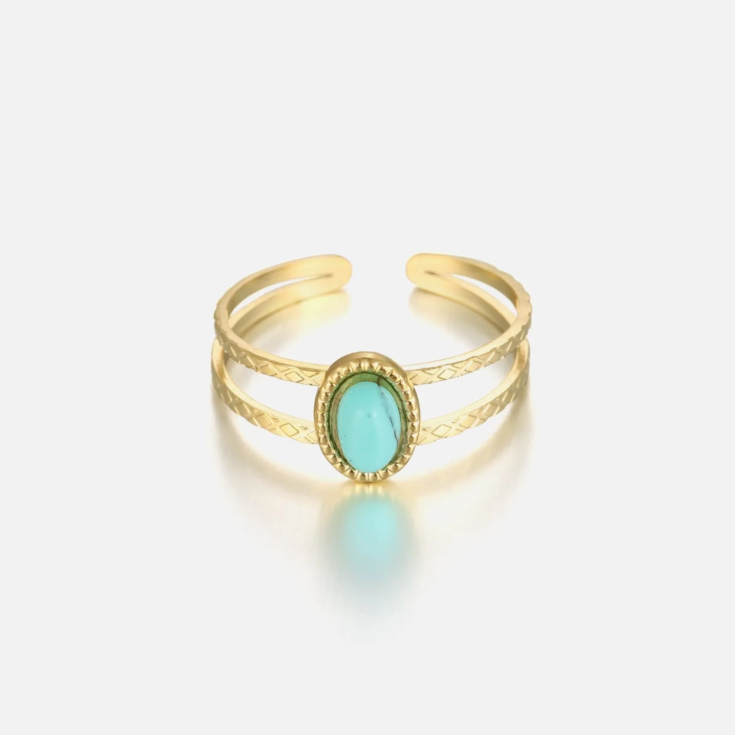 Gouden ring met turquoise steen. Ring is verstelbaar naar jouw gewenste maat. Gemaakt van hoogwaardig stainless steel.