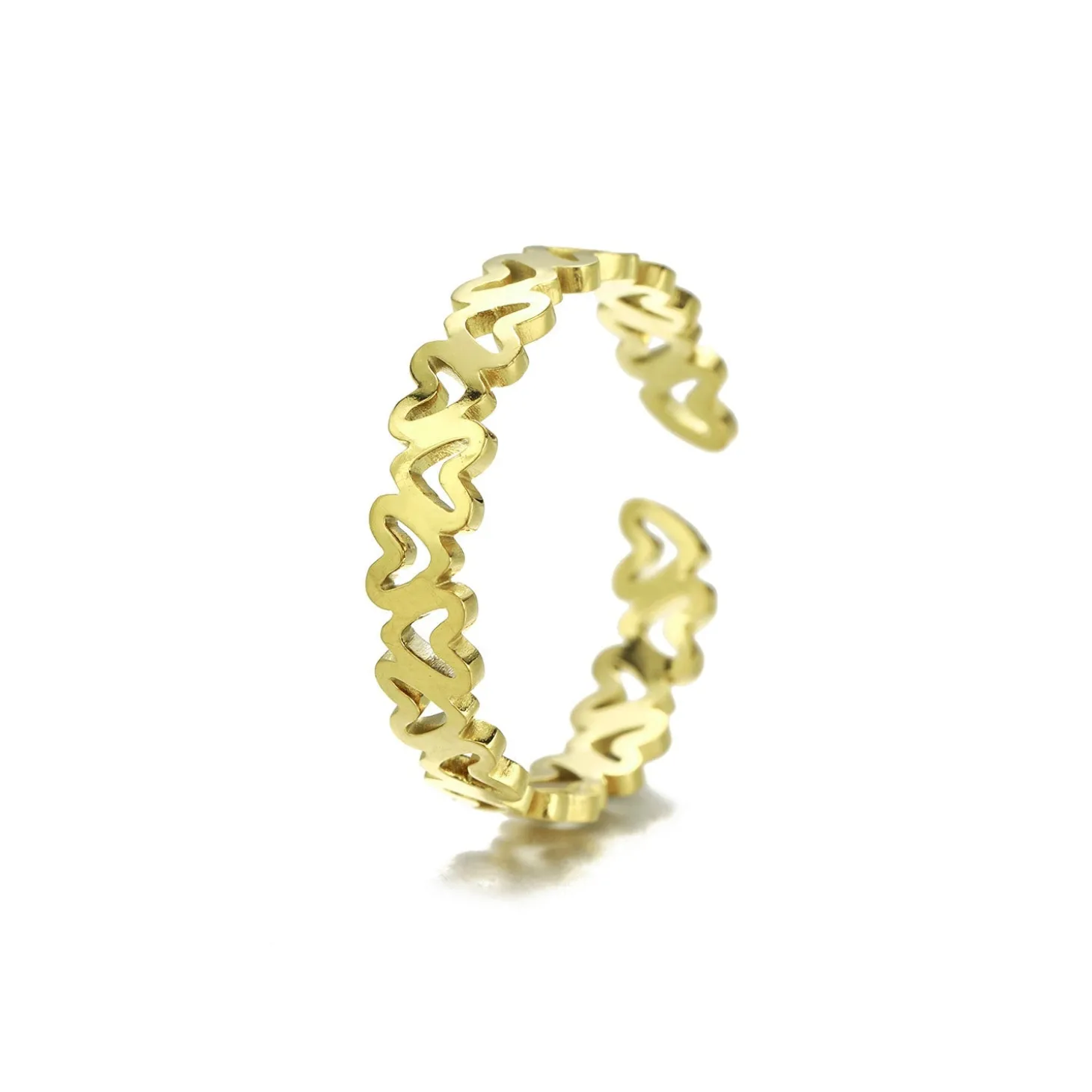 Gouden hartjes ring. Verstelbaar naar jouw gewenste maat. Gemaakt van hoogwaardig stainless steel.