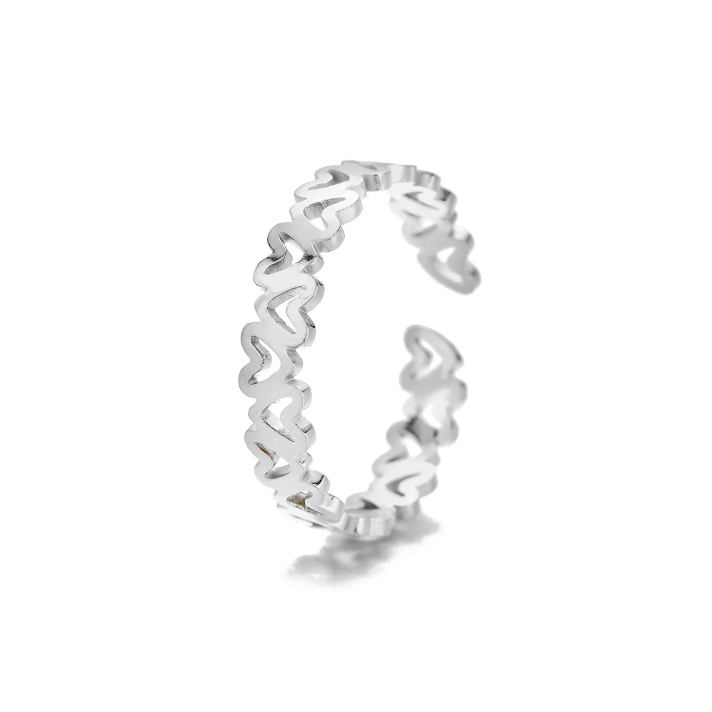 Zilveren ring met hartjes. Verstelbaar naar jouw gewenste maat. Gemaakt van hoogwaardig stainless steel.