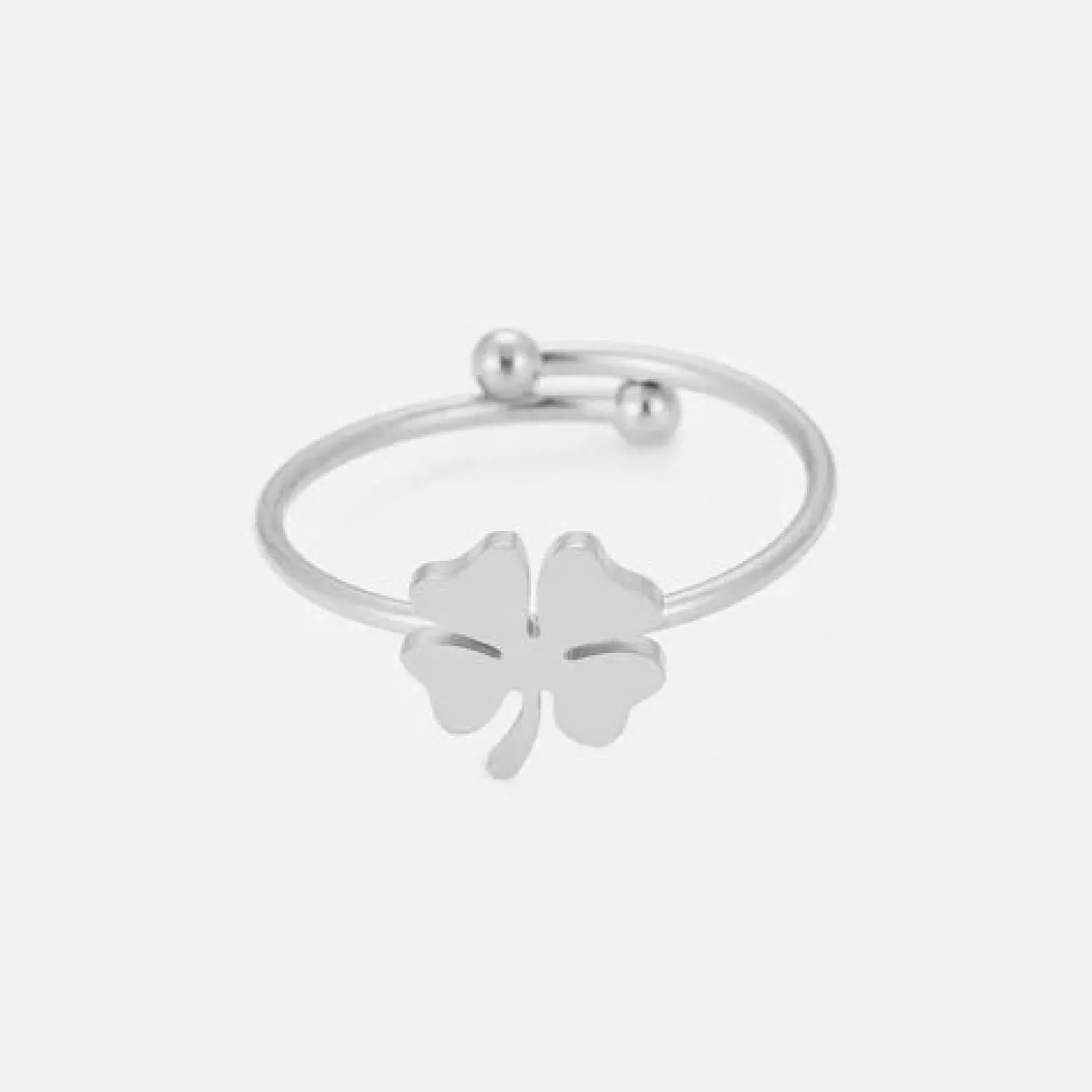 Zilveren ring met klavertjevier. Verstelbaar naar jouw gewenste maat. Gemaakt van hoogwaardig stainless steel.