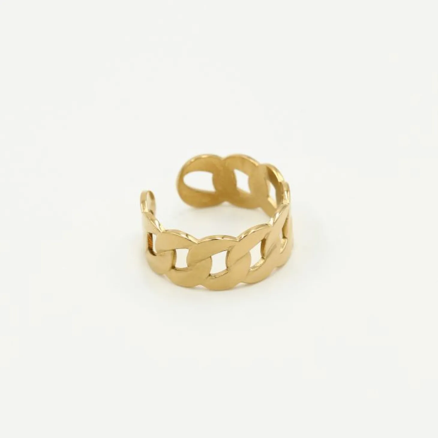 Gouden ring met grove schakels. Verstelbaar naar jouw gewenste maat. Gemaakt van hoogwaardig stainless steel.