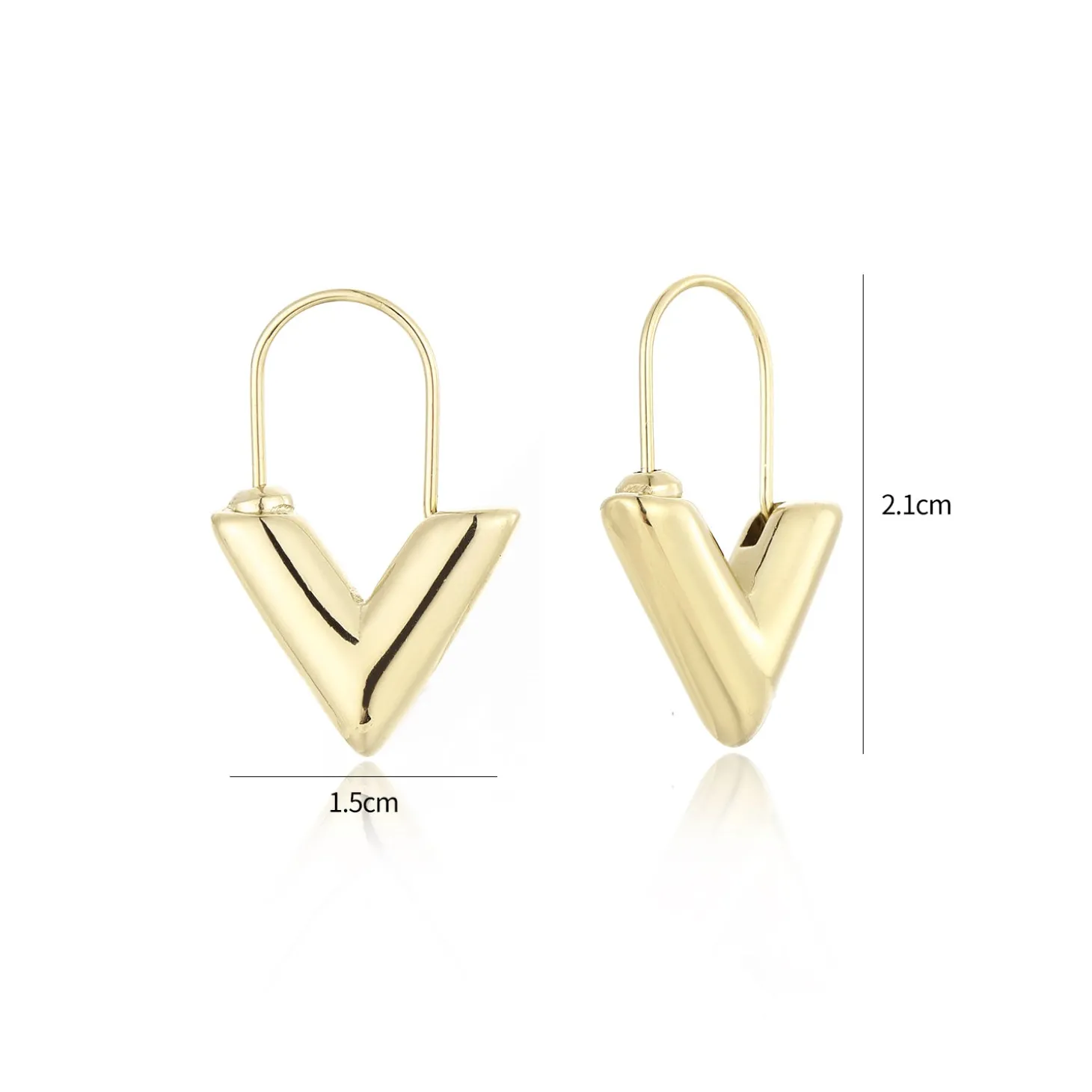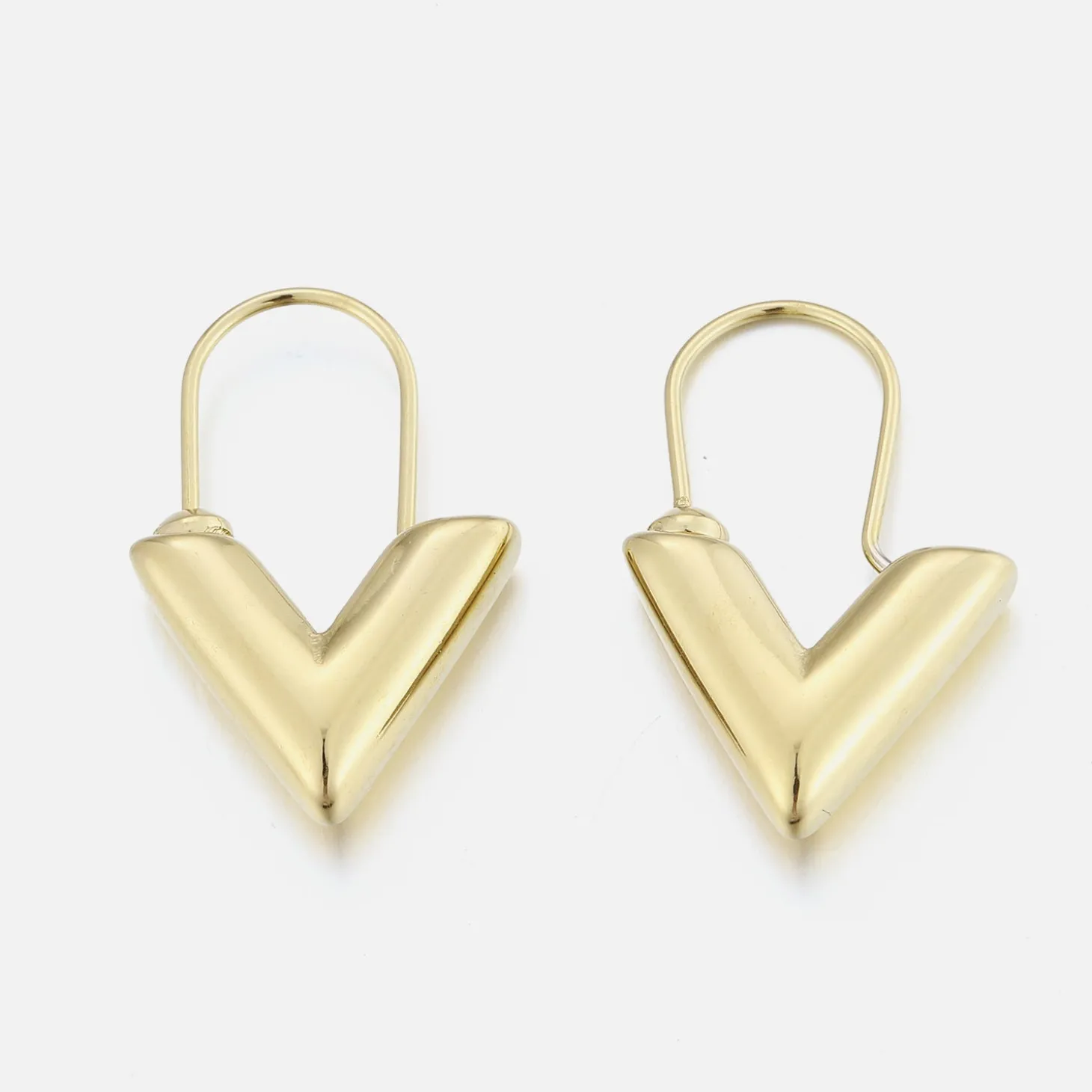 Gouden V oorbellen. Deze oorbellen zijn 2.1cm lang. Gemaakt van Hoogwaardig Stainless Steel.
