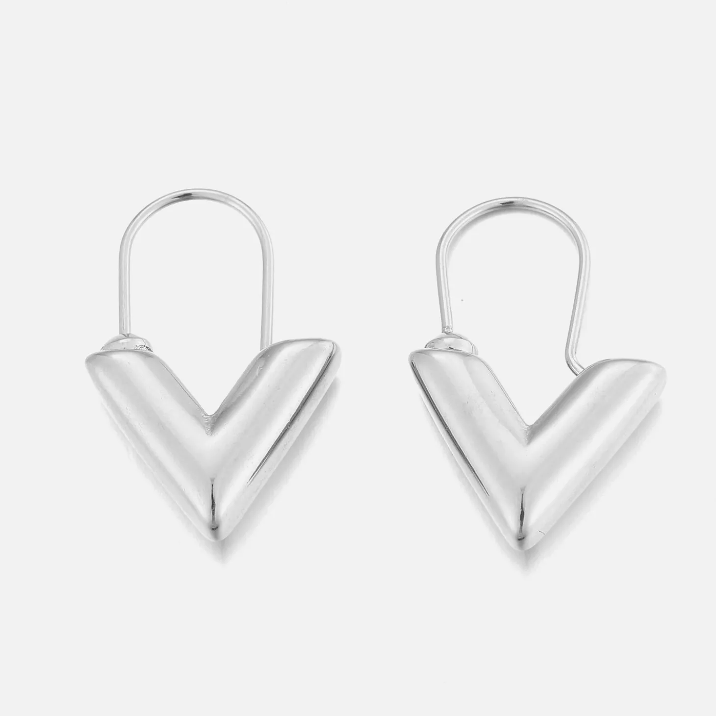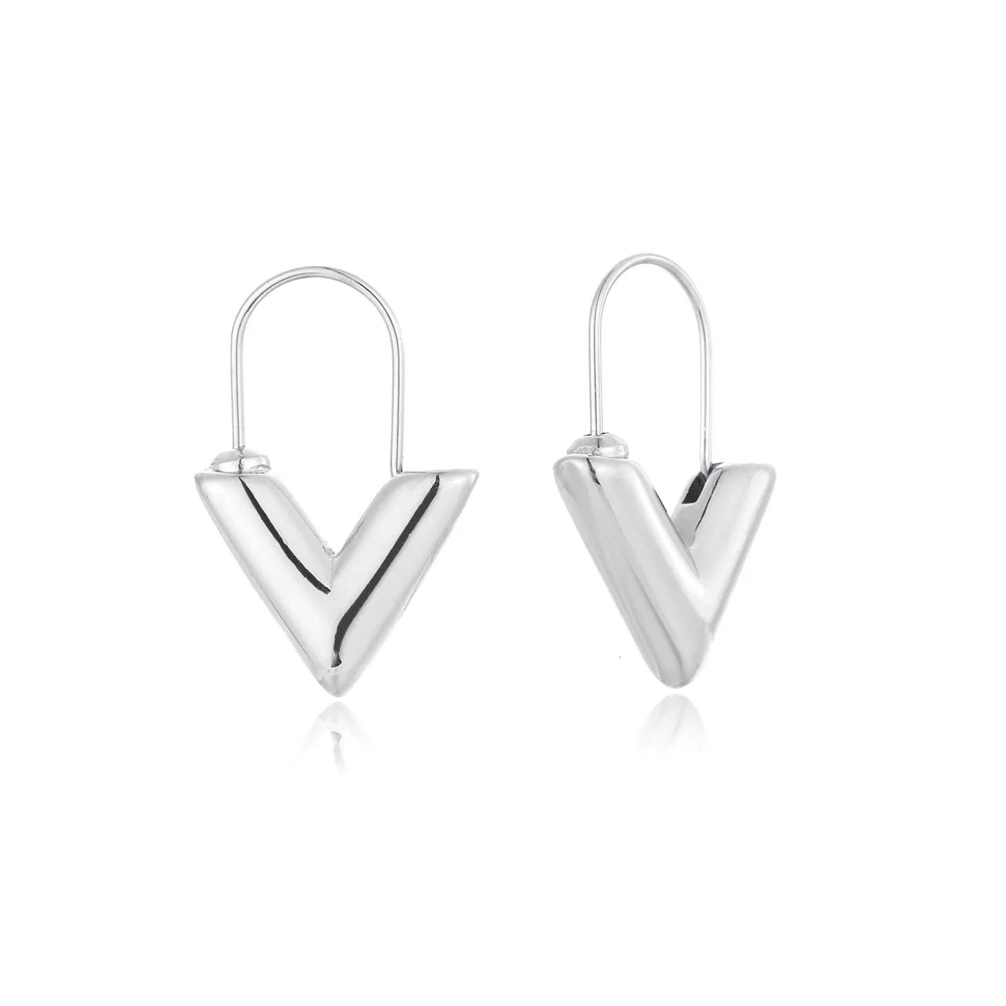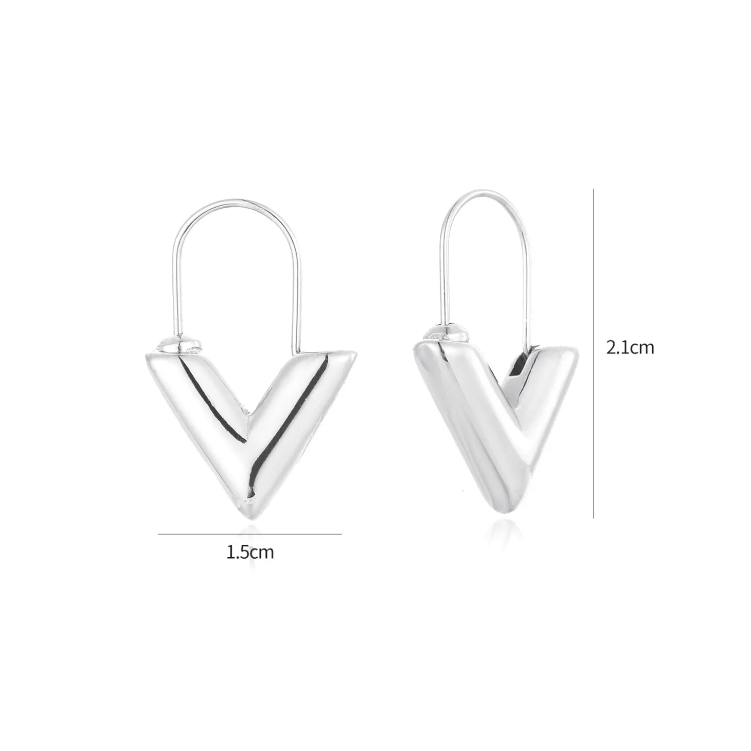 Zilveren V oorbellen. Deze oorbellen zijn 2.1cm lang. Gemaakt van Hoogwaardig Stainless Steel.