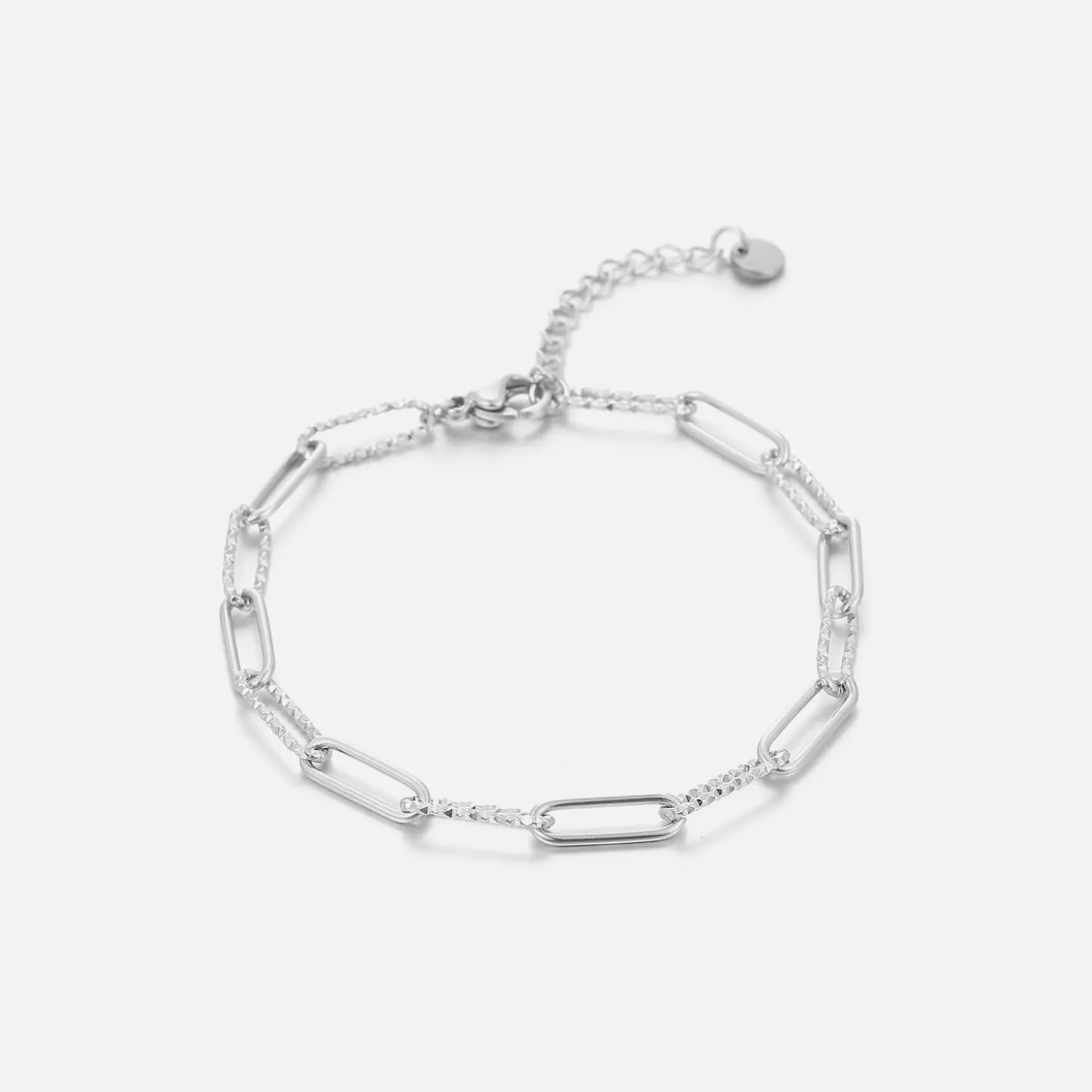 Deze tijd loze armband met paperclip schakel is 16 cm lang en kan nog eens met 4 cm verlengd worden. Gemaakt van hoogwaardig stainless steel. Dankzij het verlengstukje is de armband verstelbaar en geschikt voor verschillende polsmaten. Deze tijdloze armband is een must have in elke sieraden collectie.