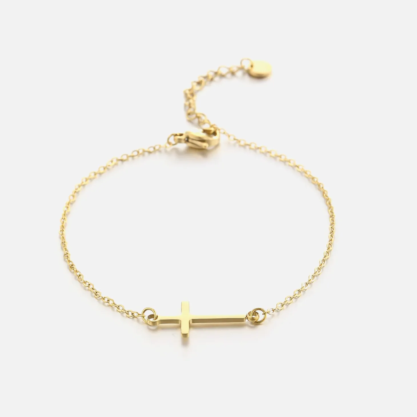 Deze minimalistische armband met kruisje is 16 cm lang en kan nog eens met 4 cm verlengd worden. Gemaakt van hoogwaardig stainless steel. Het kruis is ongeveer 12mm lang. Dankzij het verlengstukje is de armband verstelbaar en geschikt voor verschillende polsmaten.