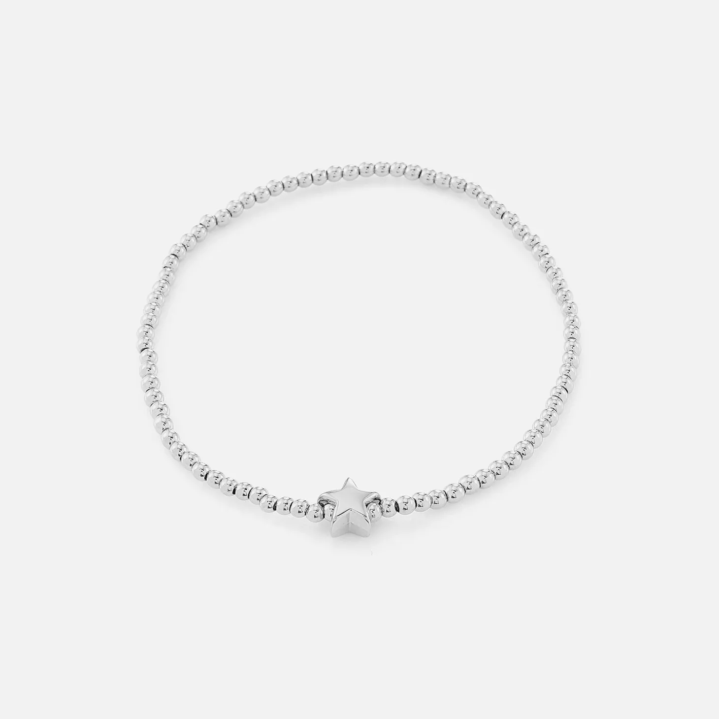 Stretch armband met ster. 16cm tot 20cm lang te stretchen. Gemaakt van hoogwaardig stainless steel. De ster is 4mm. Door het elastiek is de armband verstelbaar en geschikt voor verschillende polsmaten. Zeer goed te combineren met andere stretch armbanden. (bekijk ze hier)
