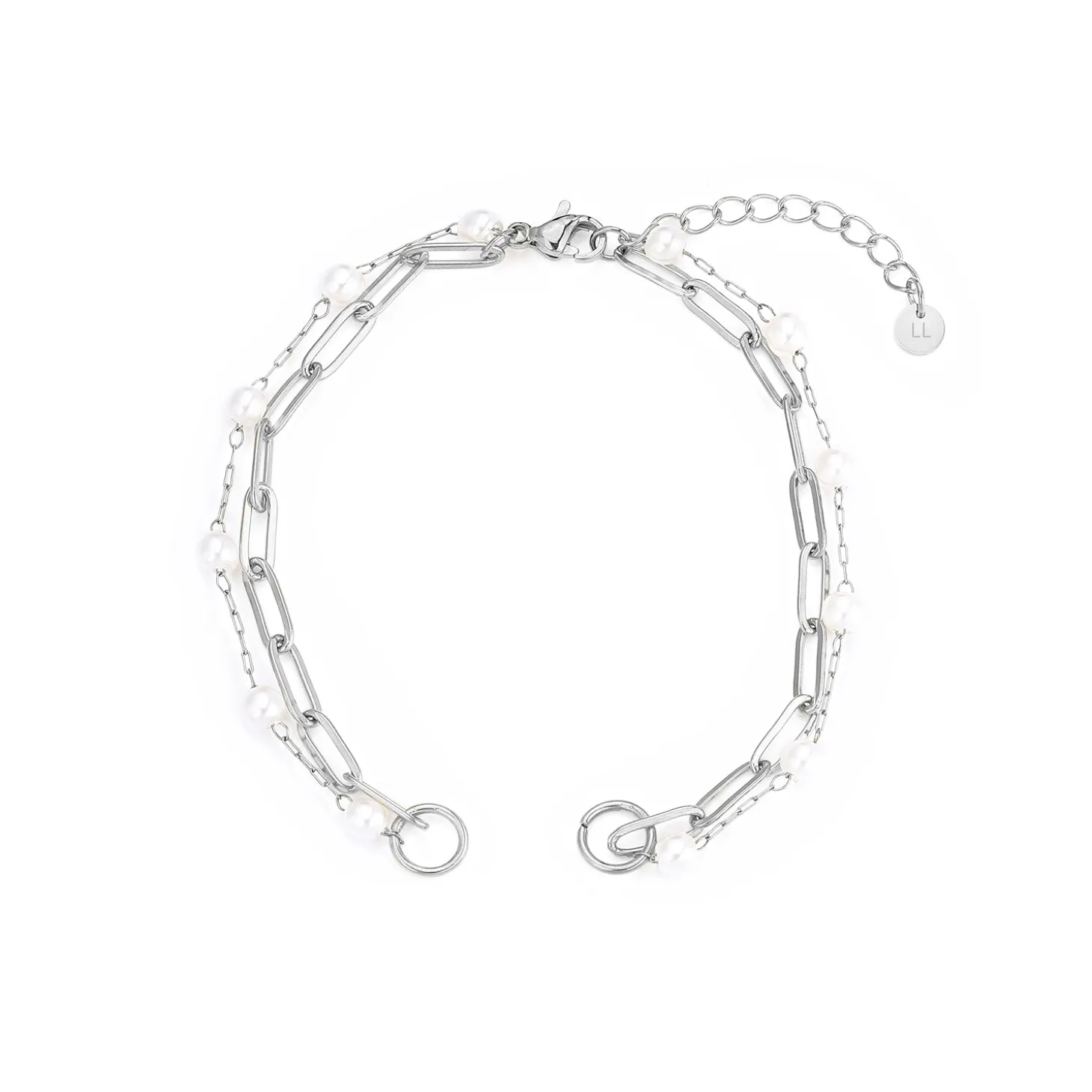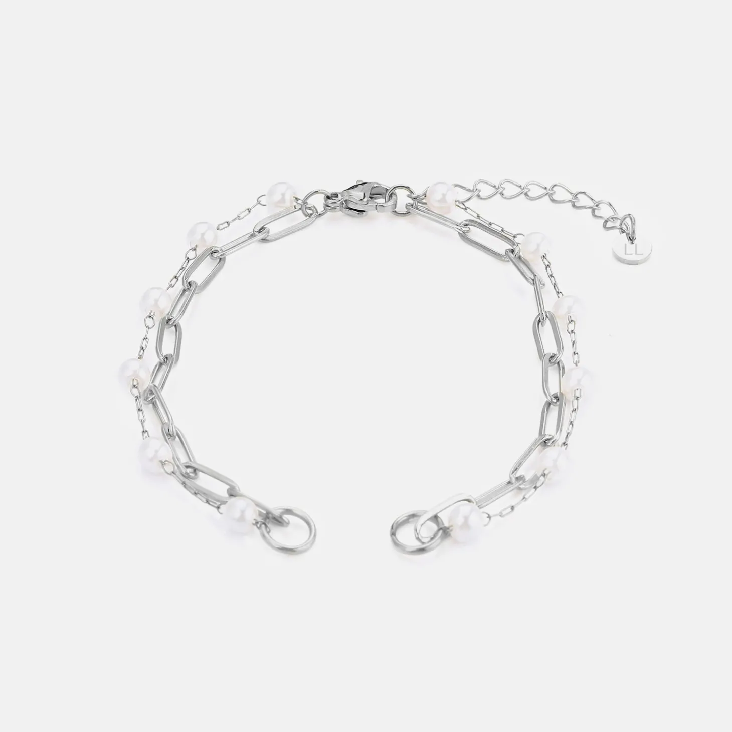 DYO Premium tweelaags parel armband zilver