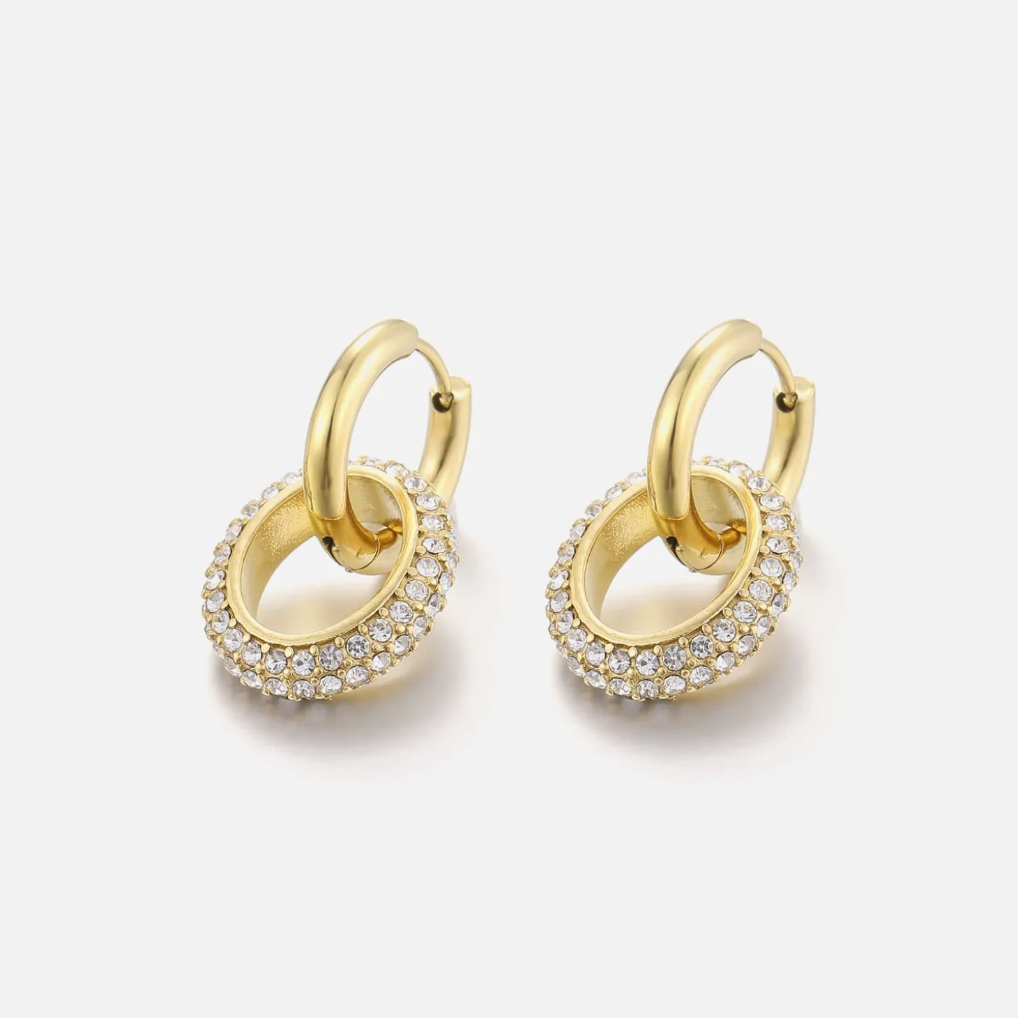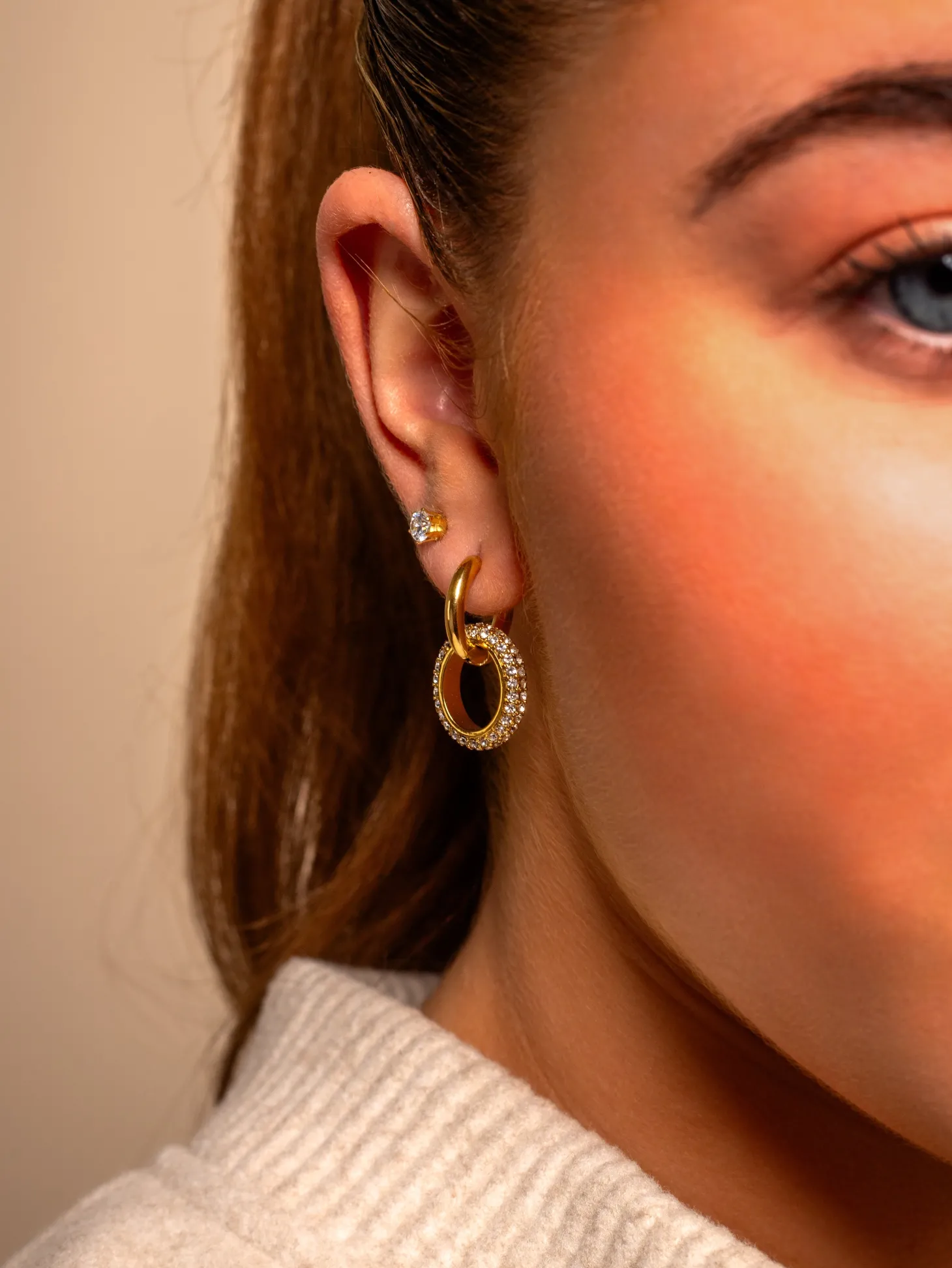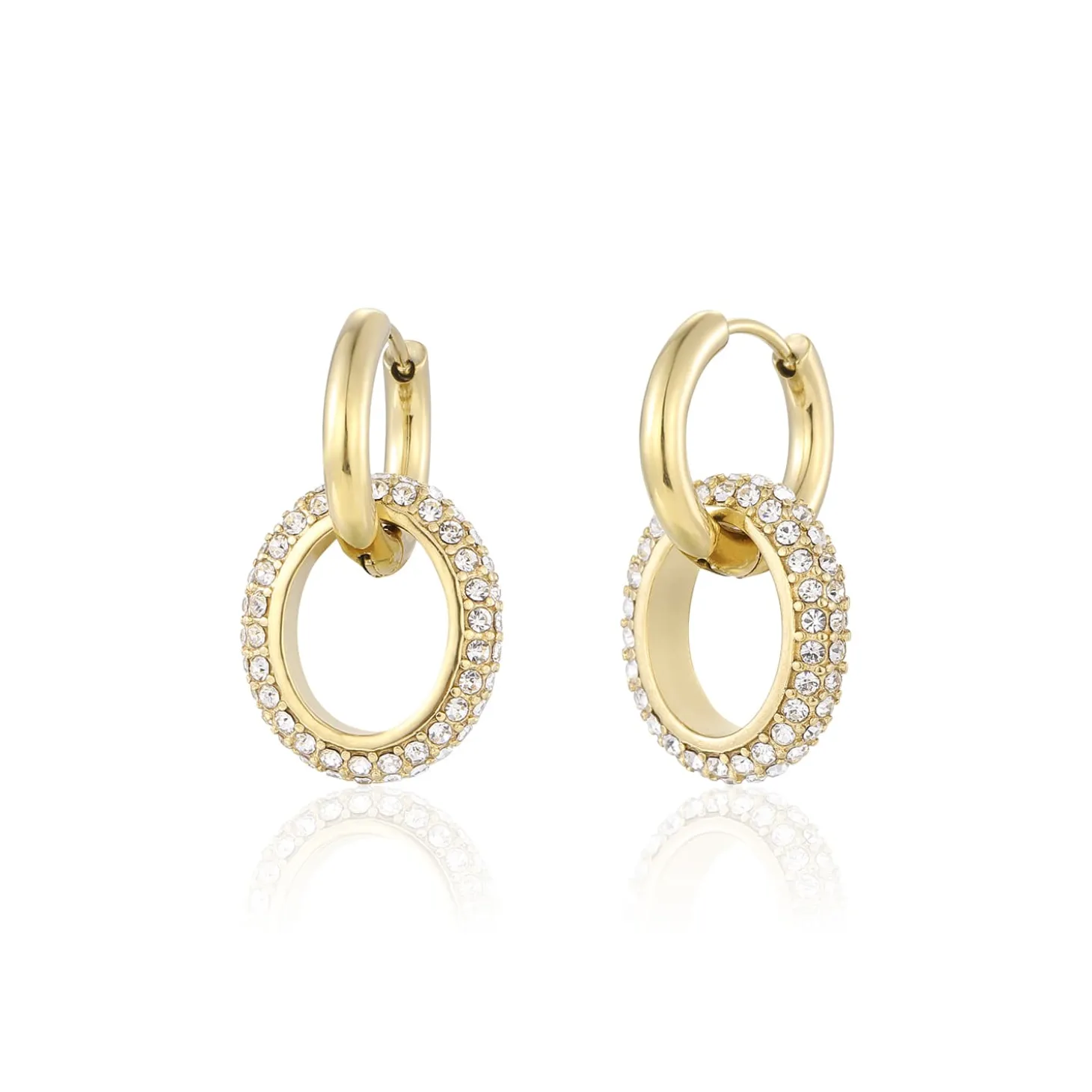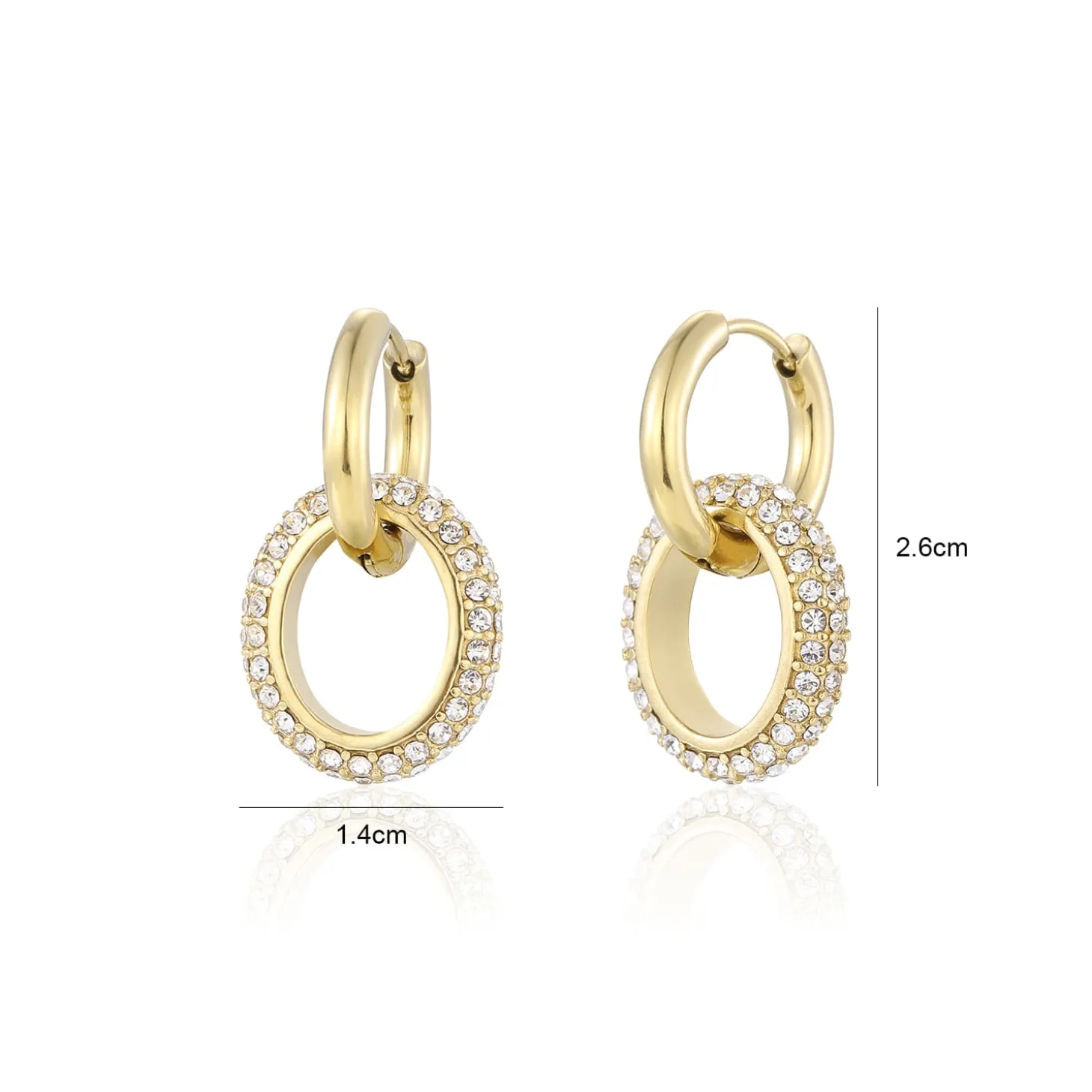 Gouden Hoops met steentjes ring. De oorbel is 2.6cm lang. Gemaakt van hoogwaardig stainless steel.