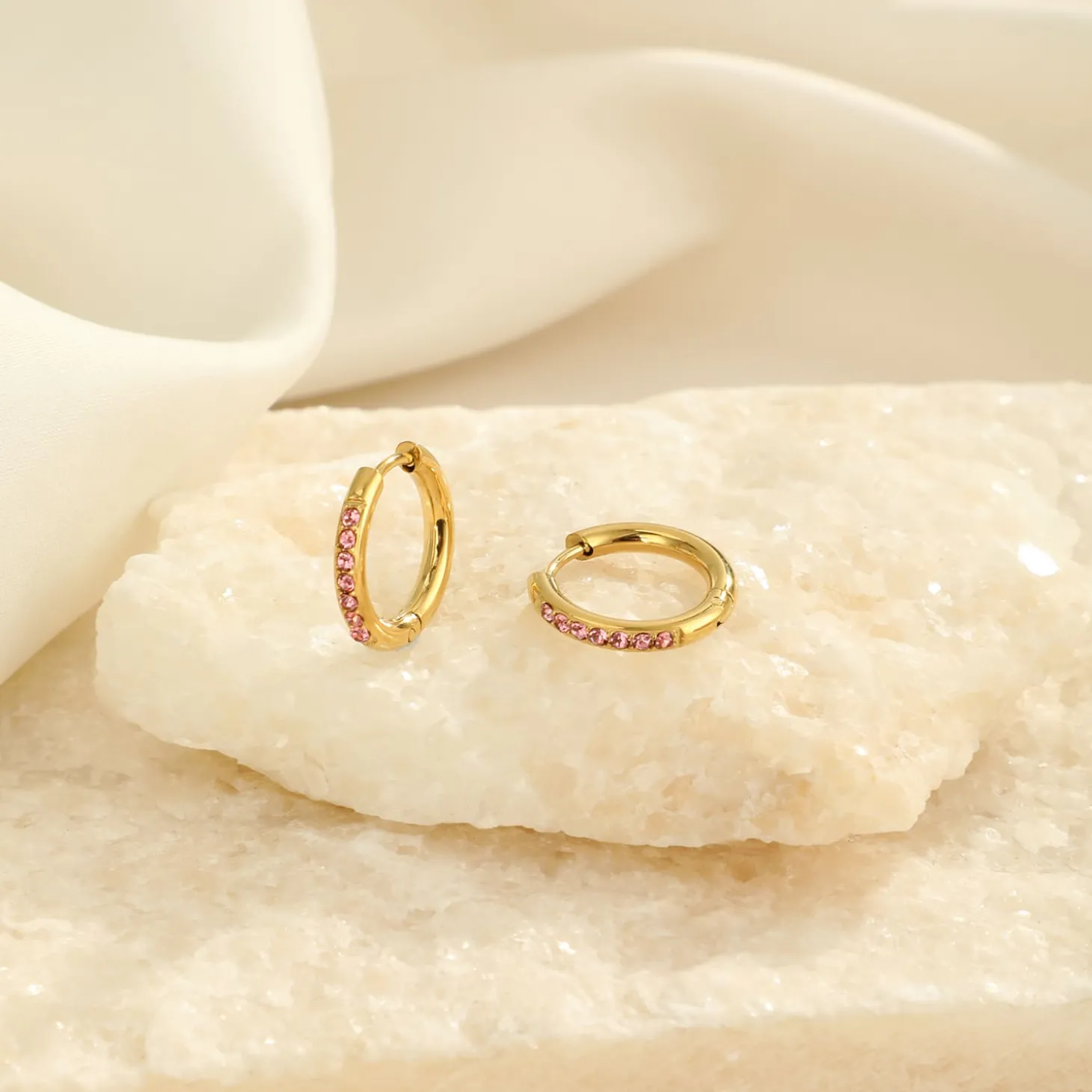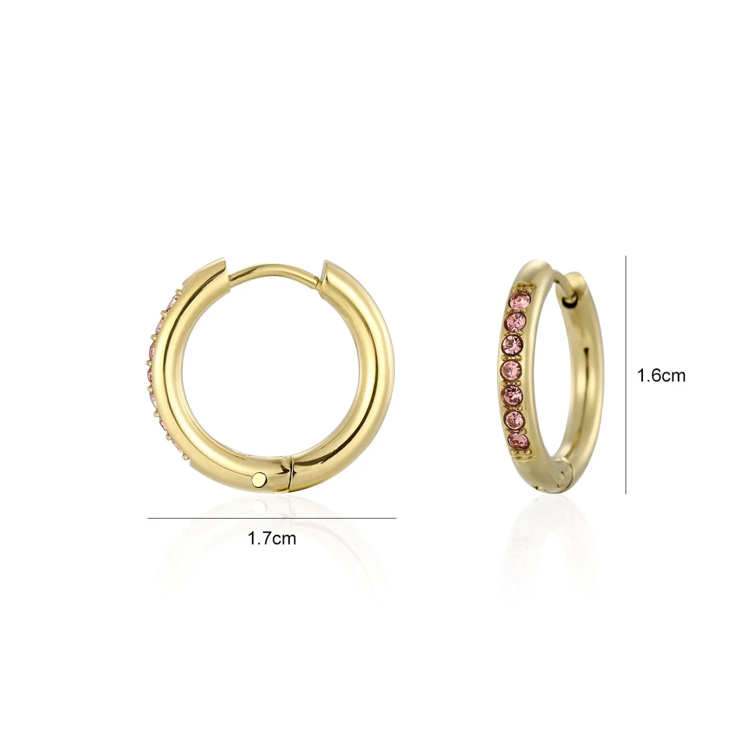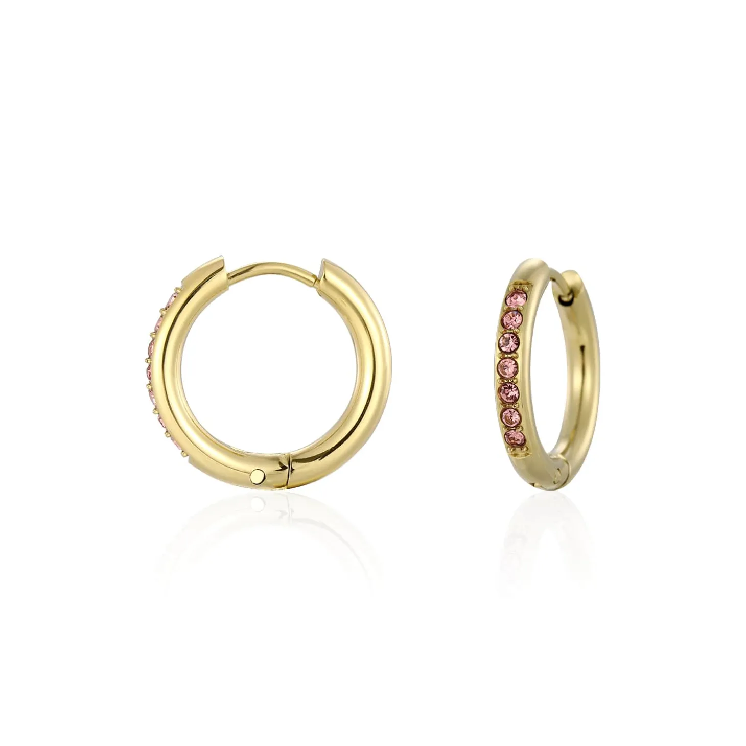 Gouden Hoops met roze steentjes. De oorbel is 1.6cm breed. Gemaakt van hoogwaardig stainless steel.