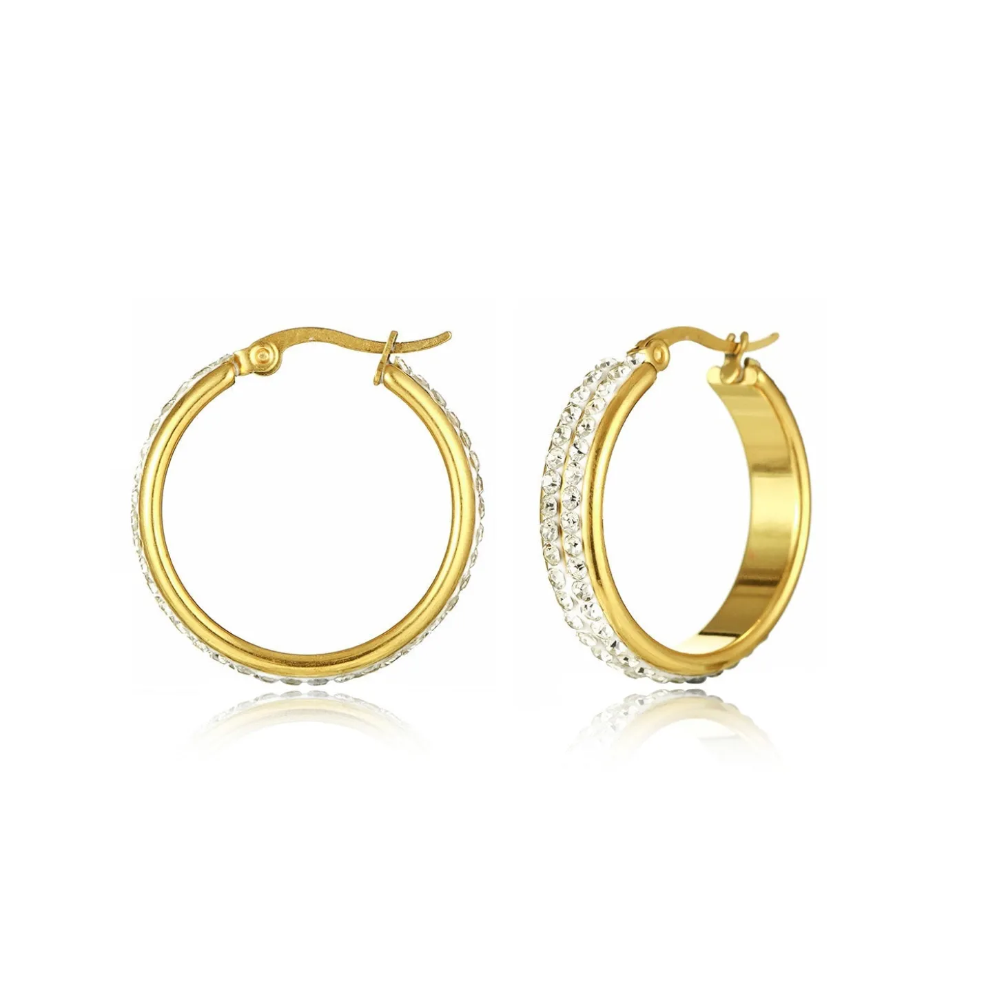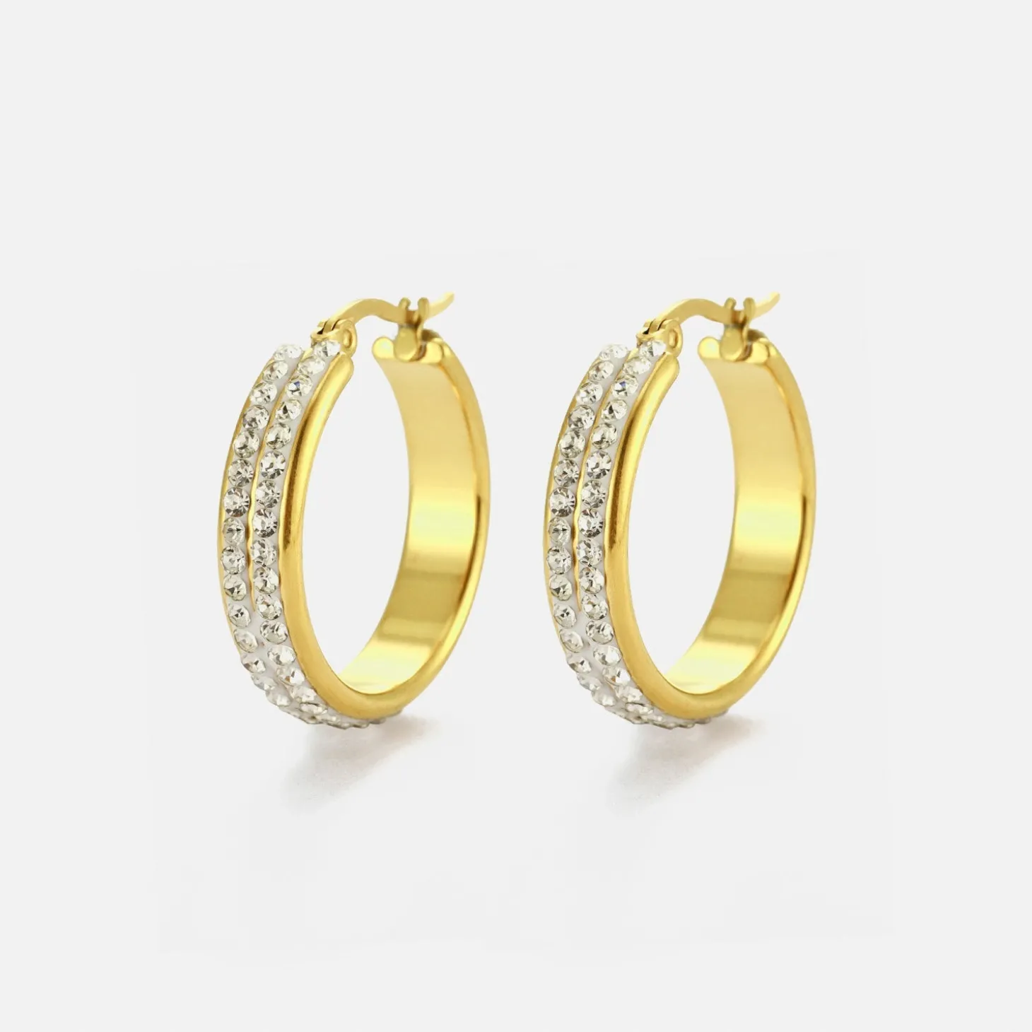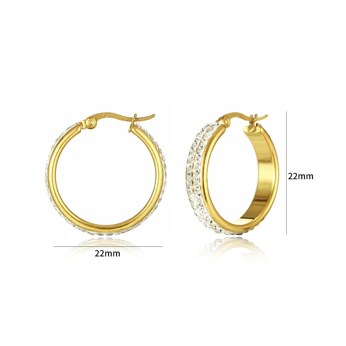 Gouden statement Hoops met steentje. De oorbel is 2.2cm breed. Gemaakt van hoogwaardig stainless steel.