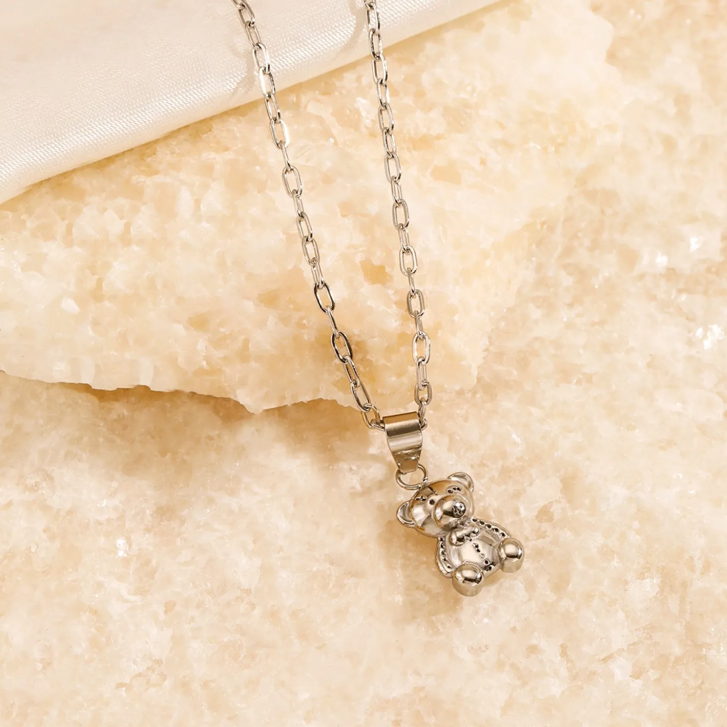 Zilveren ketting met beertje. Lengte 40cm en nog eens te verlengen met 5cm. Gemaakt van hoogwaardig stainless steel.