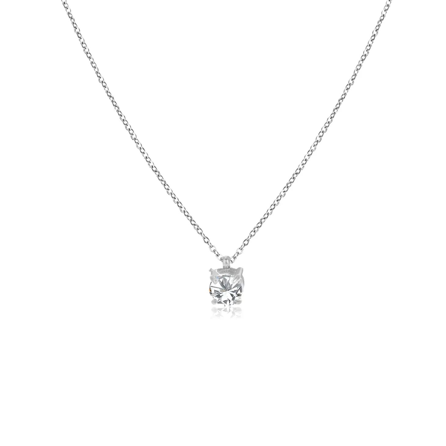 Zilveren ketting met Diamant. Lengte 40cm en nog eens te verlengen met 5cm. Het bedeltje is ongeveer 0.8cm breed. Gemaakt van hoogwaardig stainless steel.