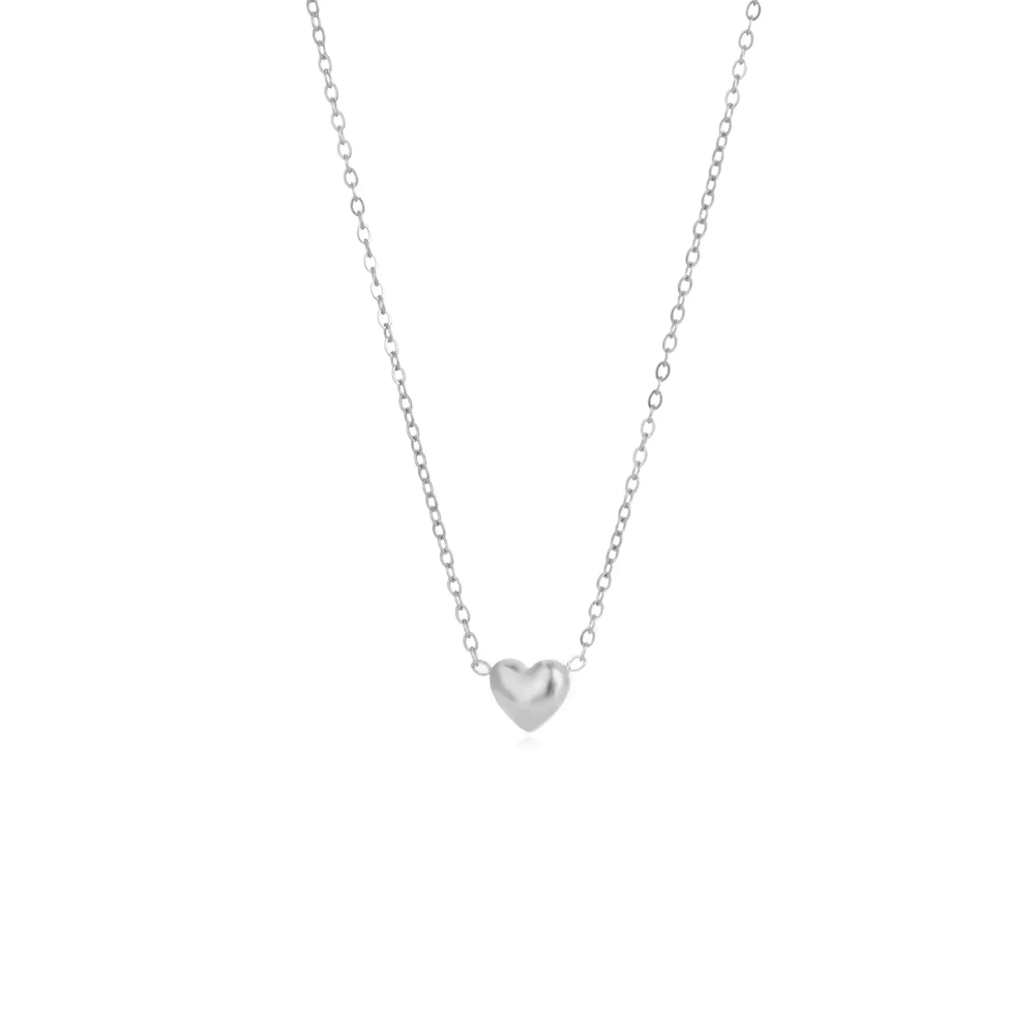 Zilveren ketting met hartje. Lengte 40cm en nog eens te verlengen met 5cm. Het bedeltje is ongeveer 0.5cm breed. Gemaakt van hoogwaardig stainless steel.