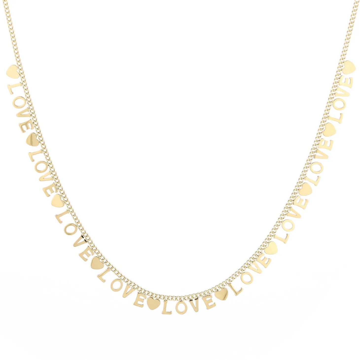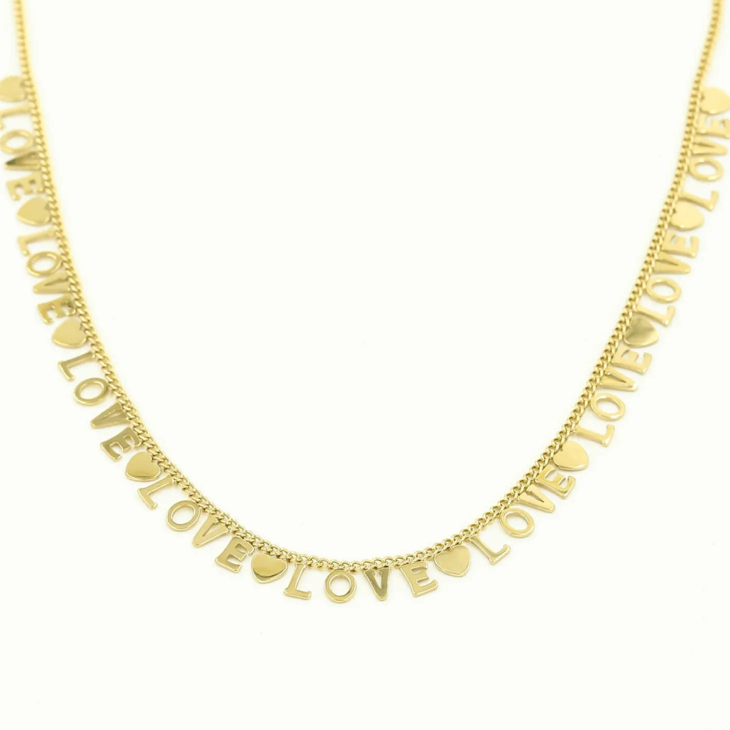Gouden platte ketting met love letters. Lengte 40cm en nog eens te verlengen met 5cm. Dikte 4mm. Gemaakt van hoogwaardig stainless steel.
