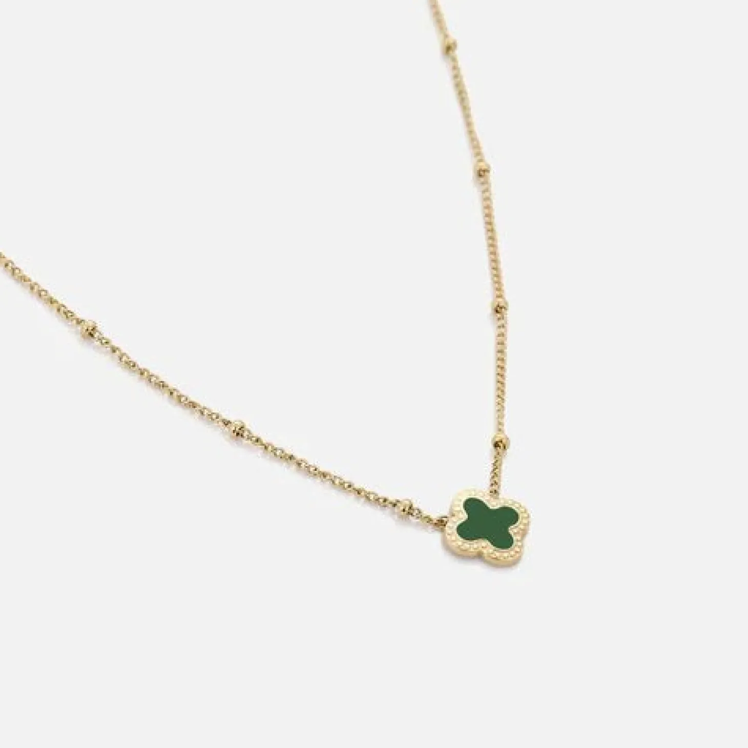 Zilveren ketting met groene klavertje vier. Lengte 40cm en nog eens te verlengen met 5cm. Gemaakt van hoogwaardig stainless steel.