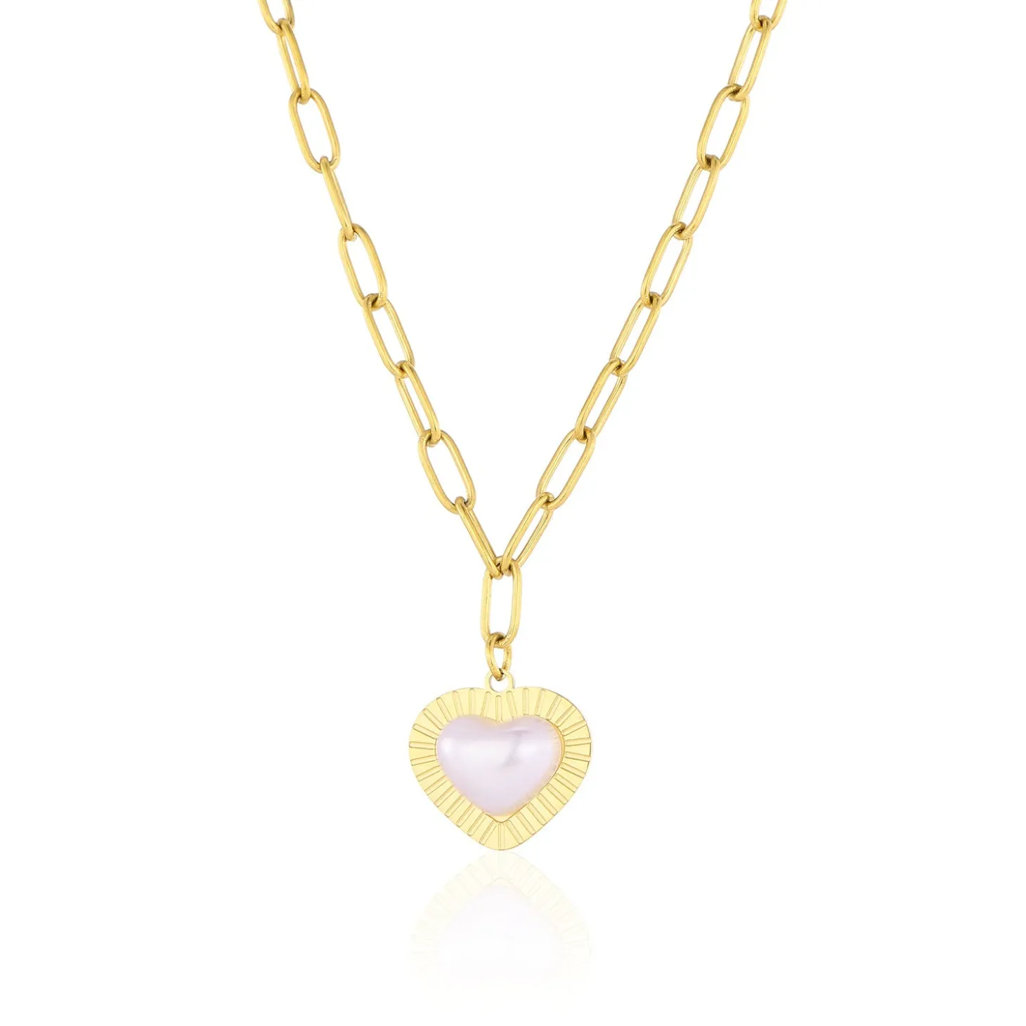 Gouden ketting met parel hart. Lengte 40cm en nog eens te verlengen met 5cm. Gemaakt van hoogwaardig stainless steel. (let op! parel kan verkleuren met veel contact water)