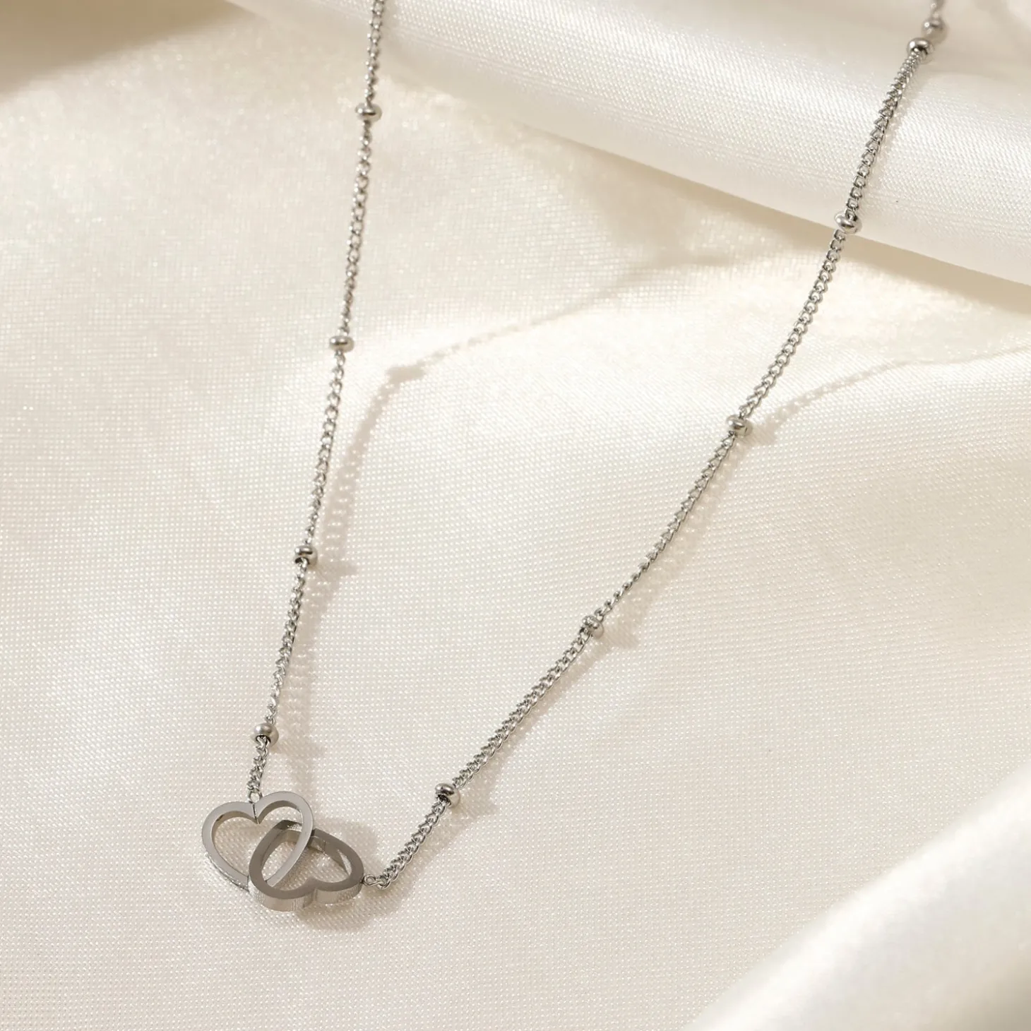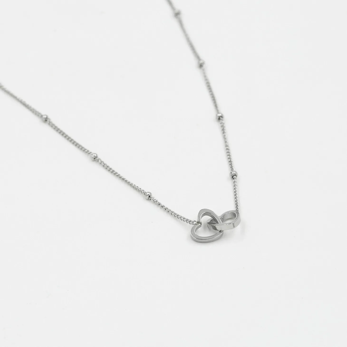 Zilveren ketting met in elkaar verbonden hartjes. Lengte 40cm en nog eens te verlengen met 5cm. Gemaakt van hoogwaardig stainless steel.
