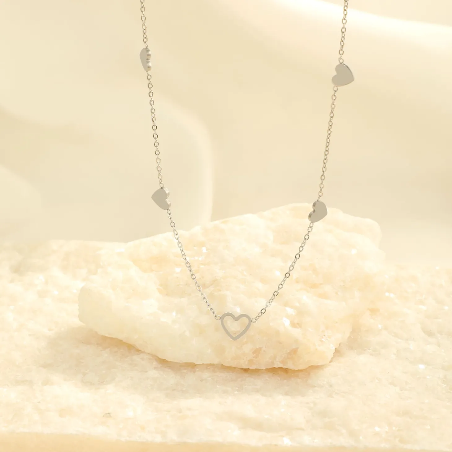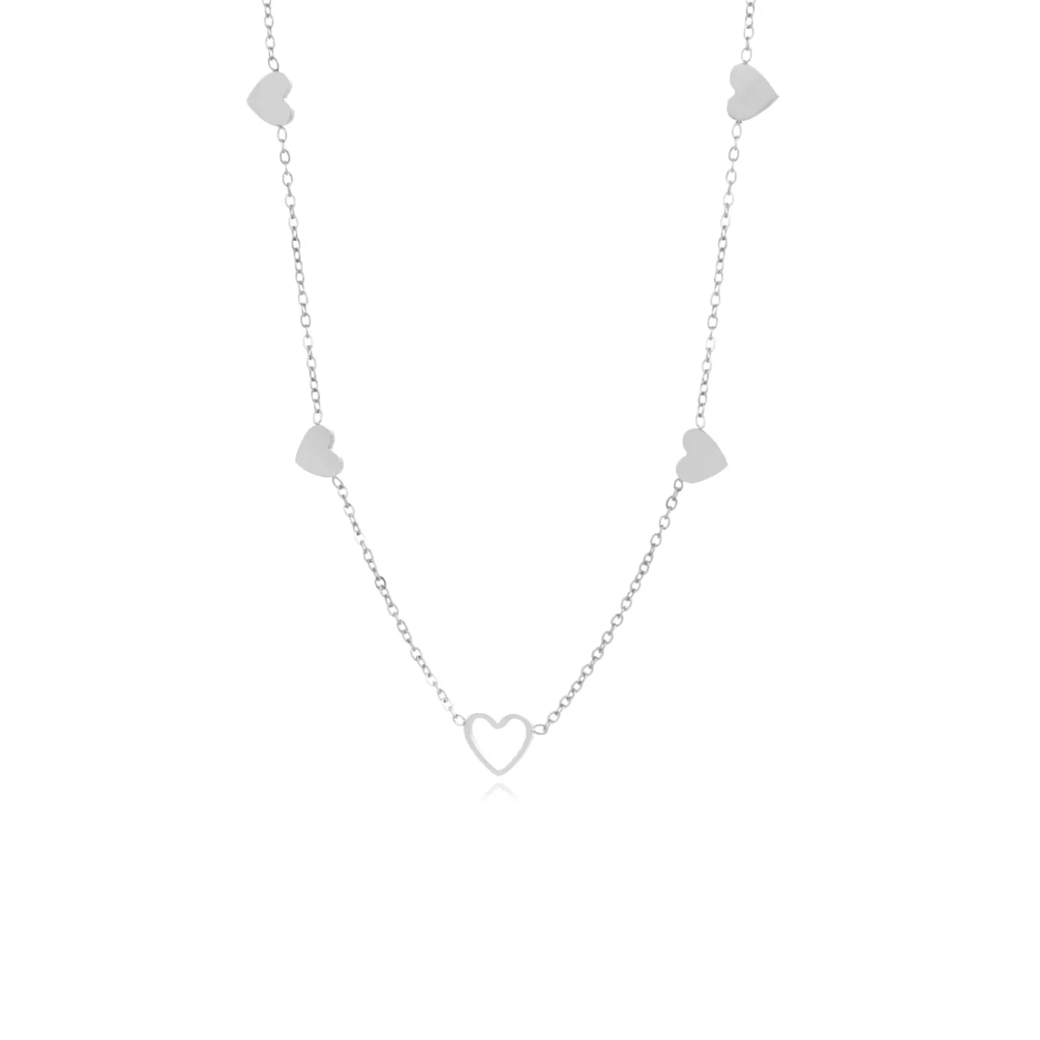Ketting vier gesloten hartjes zilver