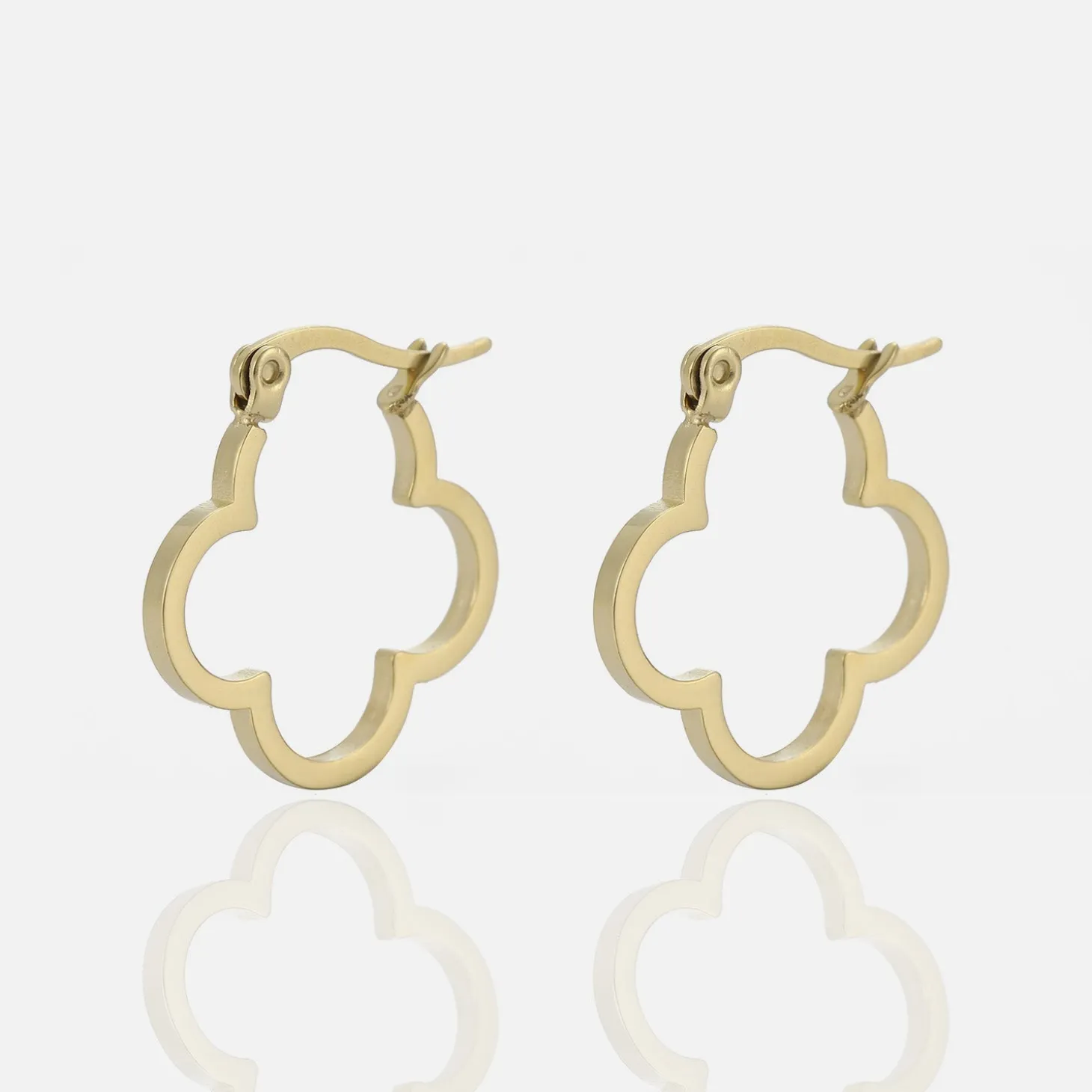 Gouden klavertjevier vorm Hoops. De oorbel is 2cm breed. Gemaakt van hoogwaardig stainless steel.