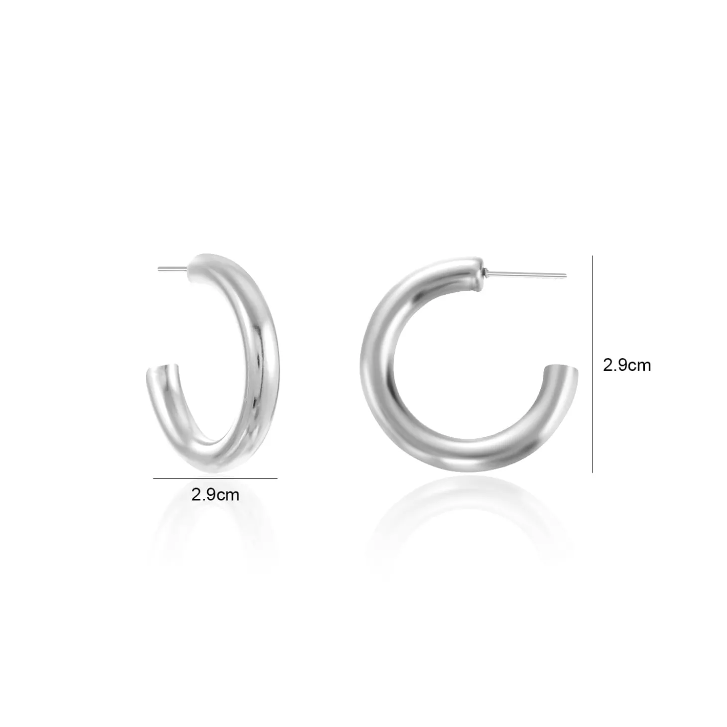 Zilveren oorstekers Hoops. Deze oorbellen zijn 2.9cm breed. Gemaakt van Hoogwaardig Stainless Steel.