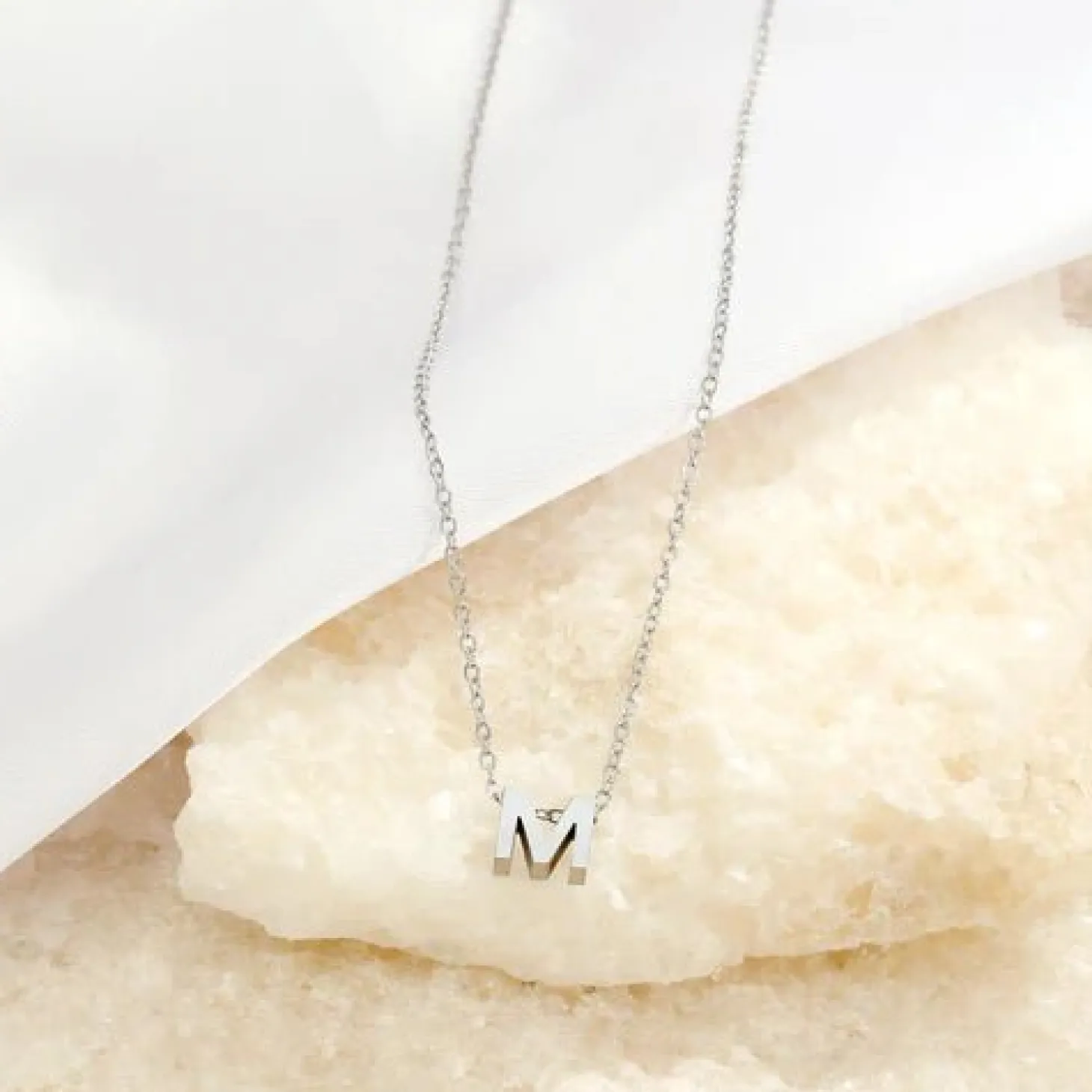 Zilveren initialen ketting. Lengte 40cm en nog eens te verlengen met 5cm. Gemaakt van hoogwaardig stainless steel.