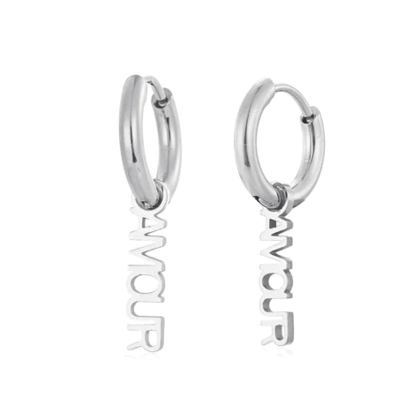 Zilveren amour oorbellen. Deze oorbellen zijn 1.8cm lang. Gemaakt van Hoogwaardig Stainless Steel.