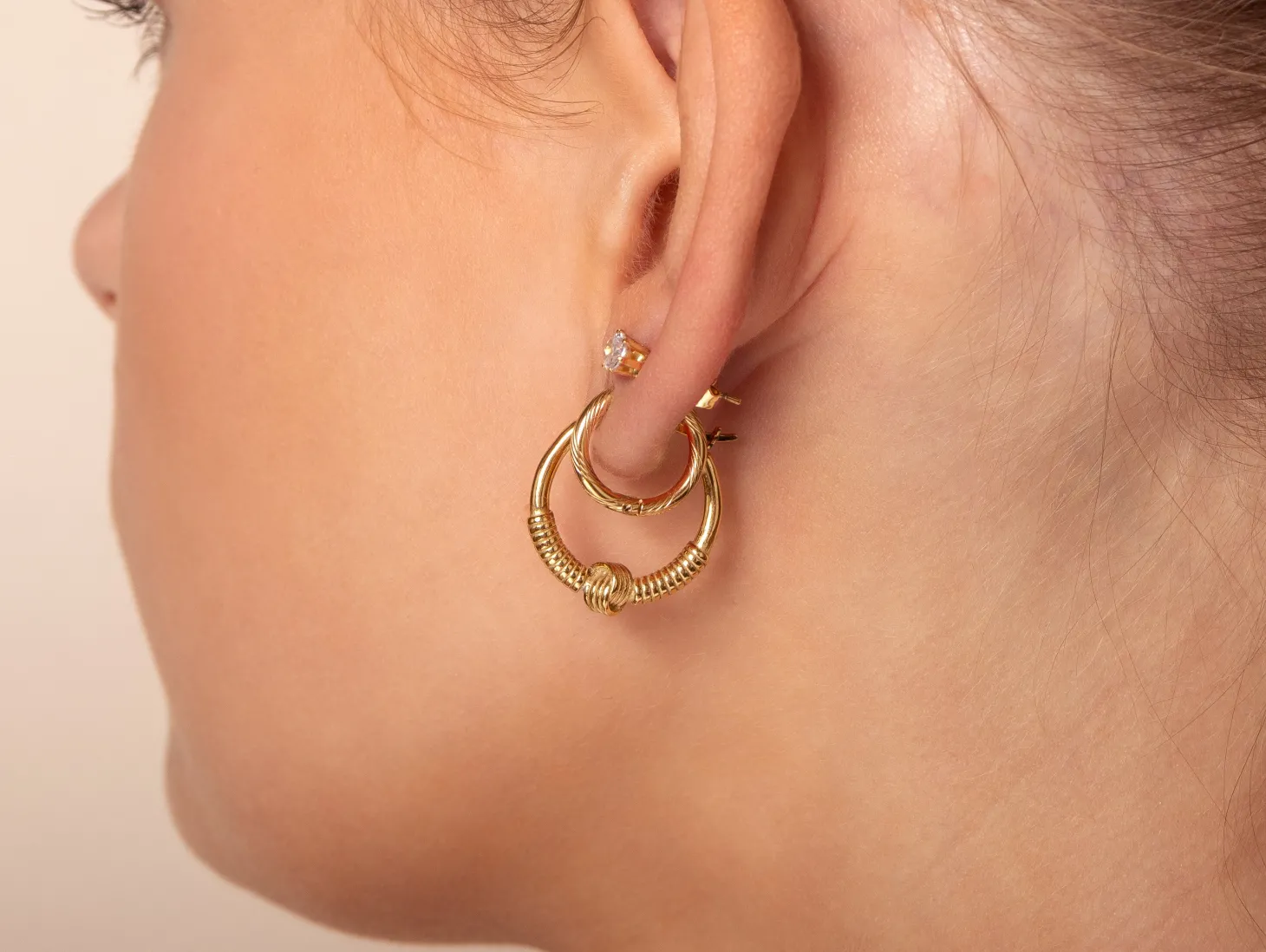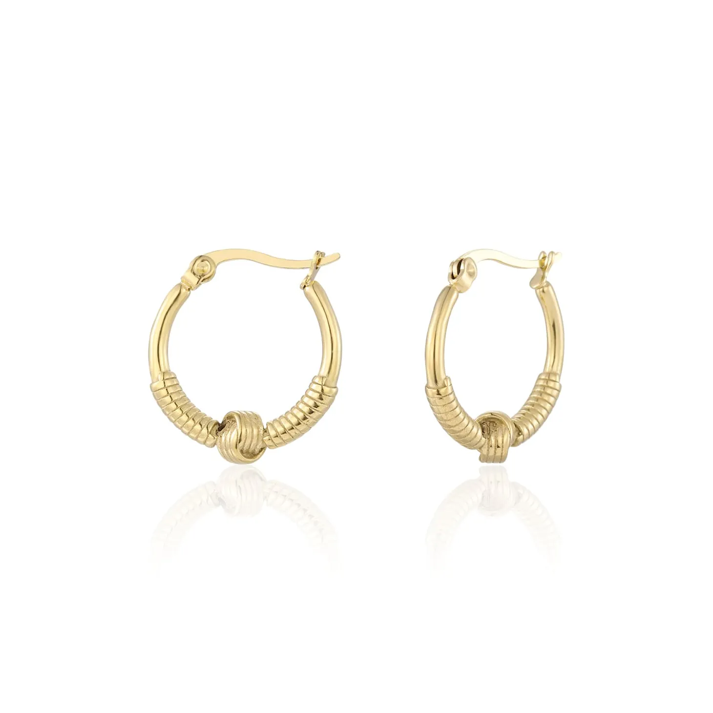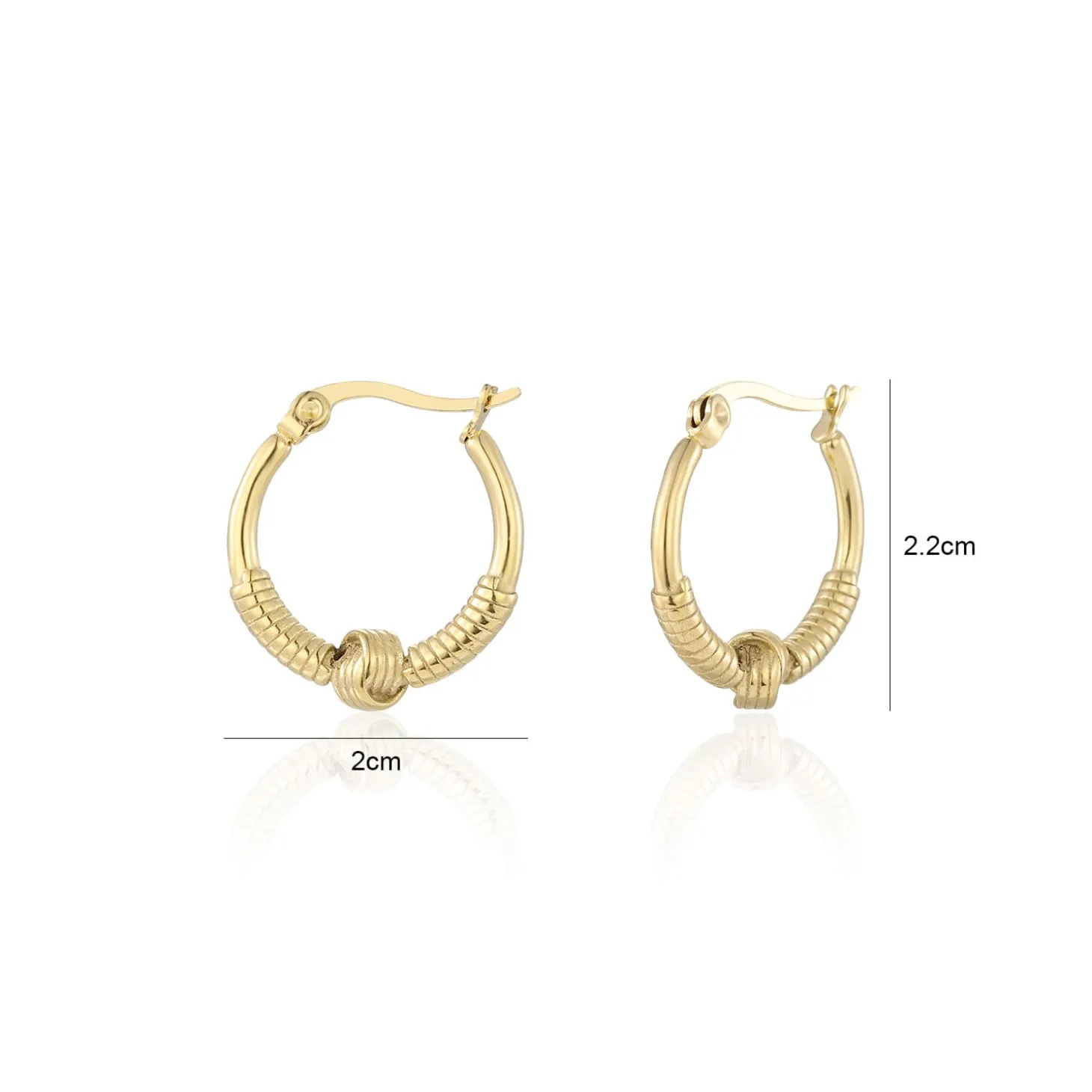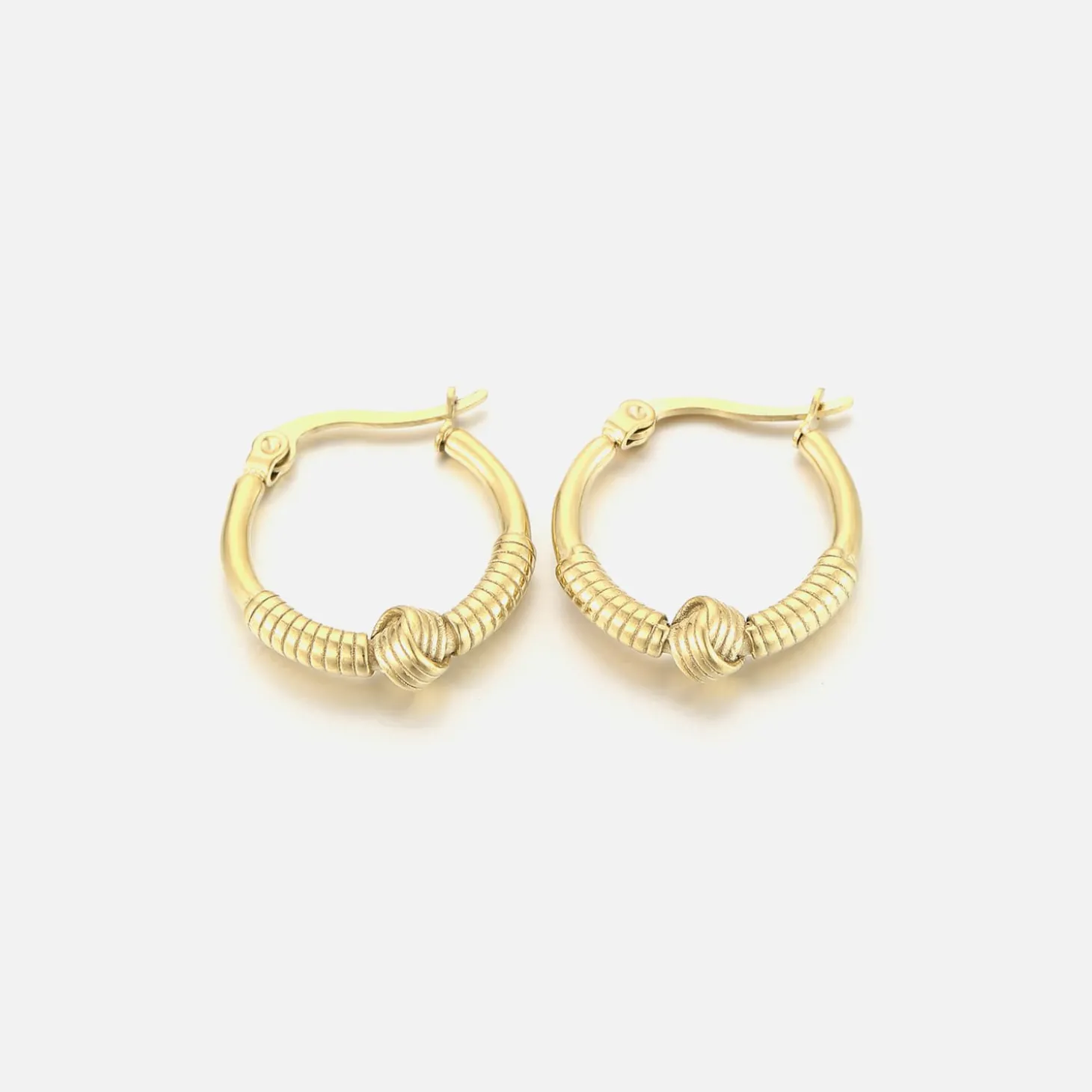Gouden bali oorbellen met knoop. Deze oorbellen zijn 2.2cm breed. Gemaakt van Hoogwaardig Stainless Steel. Boho, ibiza & bali sieraden.