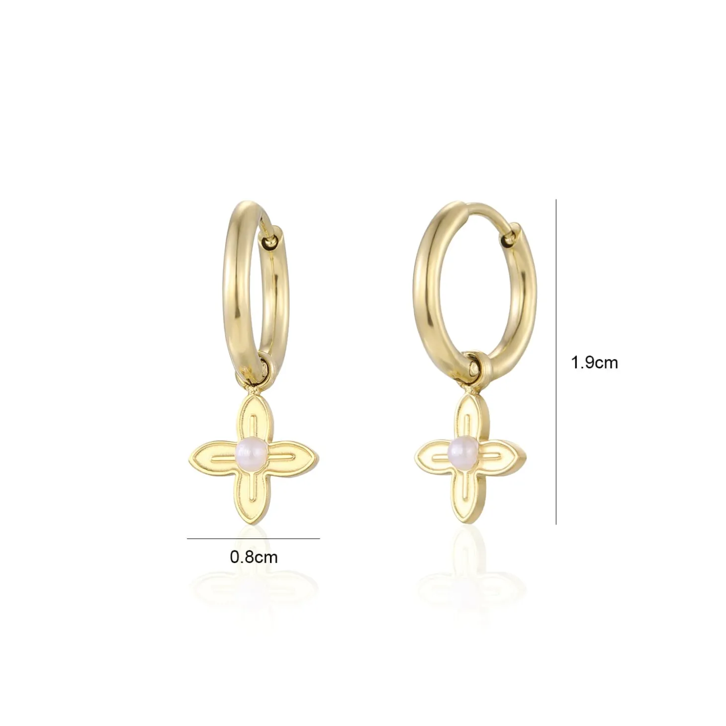 Gouden oorbellen met bloem bedeltje. Deze oorbellen zijn 1.9cm breed. Gemaakt van Hoogwaardig Stainless Steel.