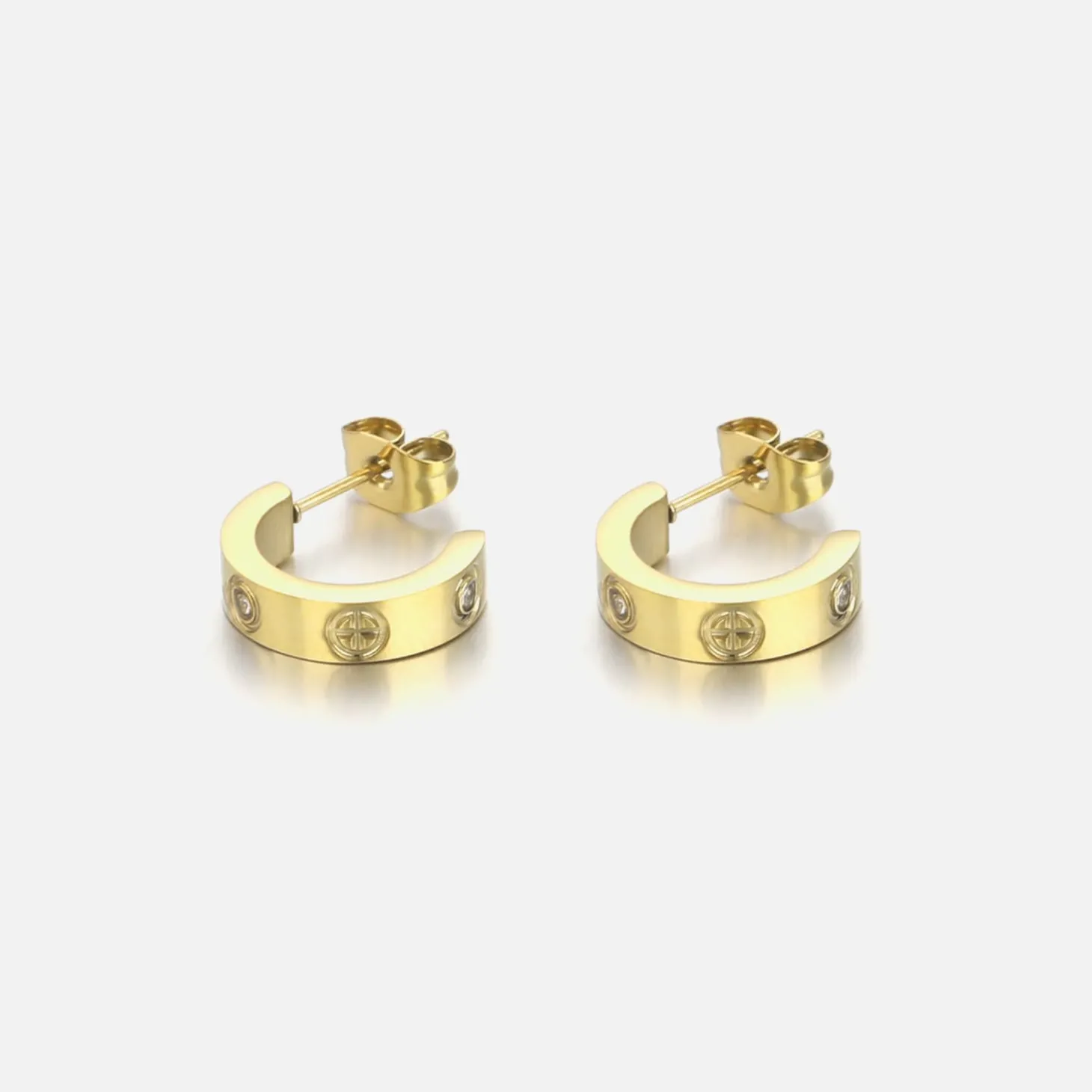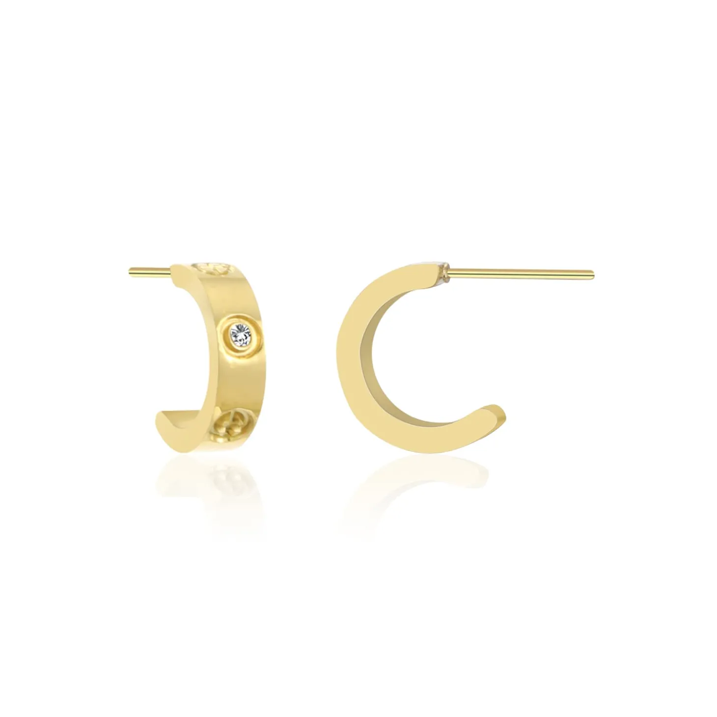 Gouden oorsteker hoop met steentjes. Deze oorbellen zijn 1.3cm breed. Gemaakt van Hoogwaardig Stainless Steel.