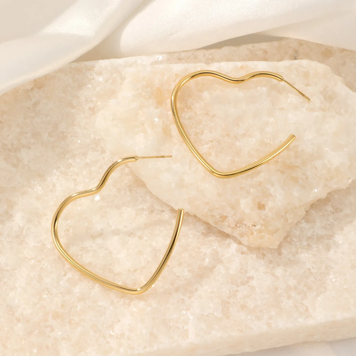 Gouden hart vorm hoops. Deze oorbellen zijn 3.5cm breed. Gemaakt van Hoogwaardig Stainless Steel.